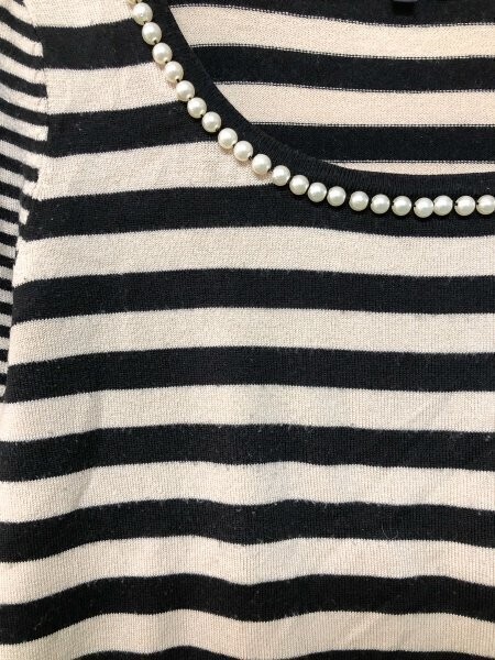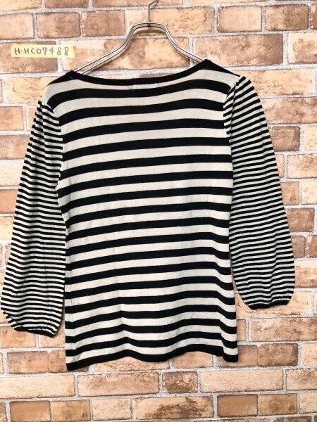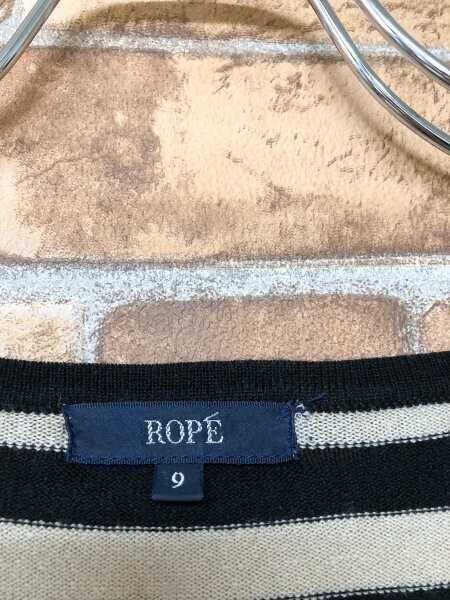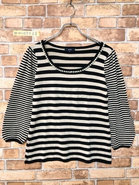 ROPE ロペ レディース パールビジュー付き ボーダー ニットソー 9 黒ベージュ アクリル他