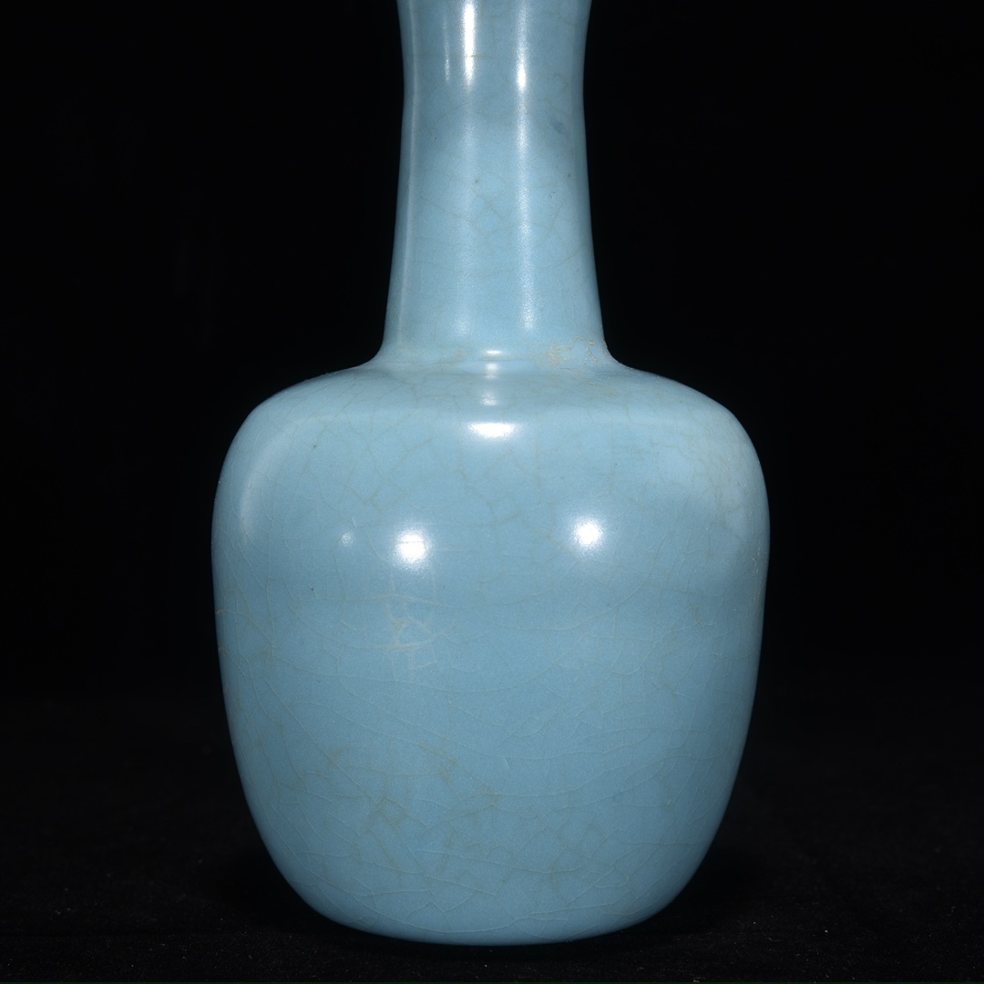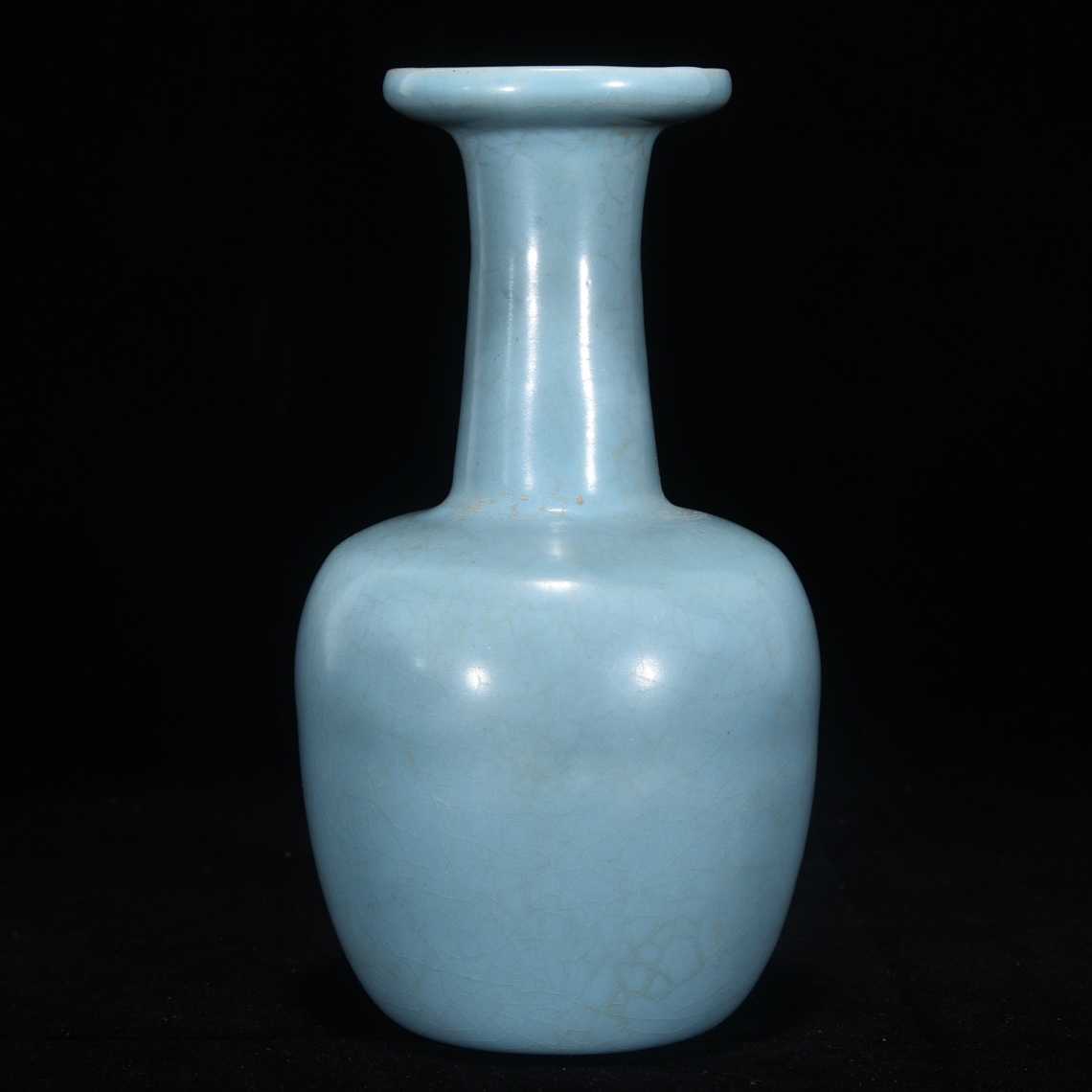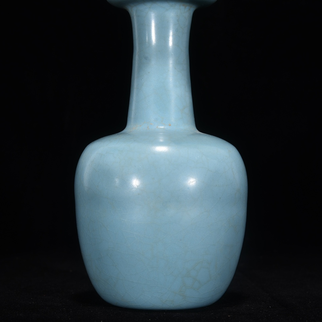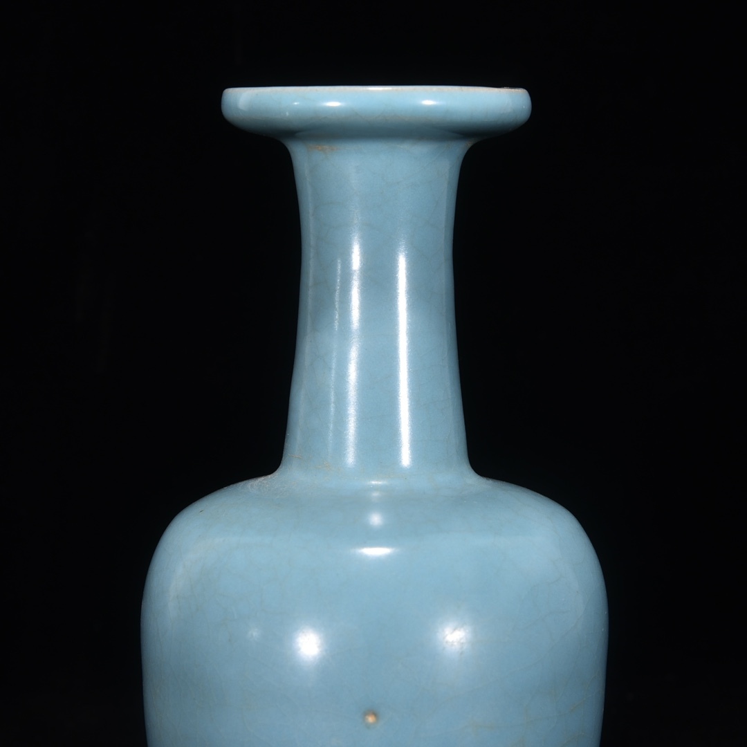 唐物 宋 汝窯 藍釉盤口瓶 陶芸 古陶磁器 中国磁器 極細工 中国古玩 骨董品 古美味 D611