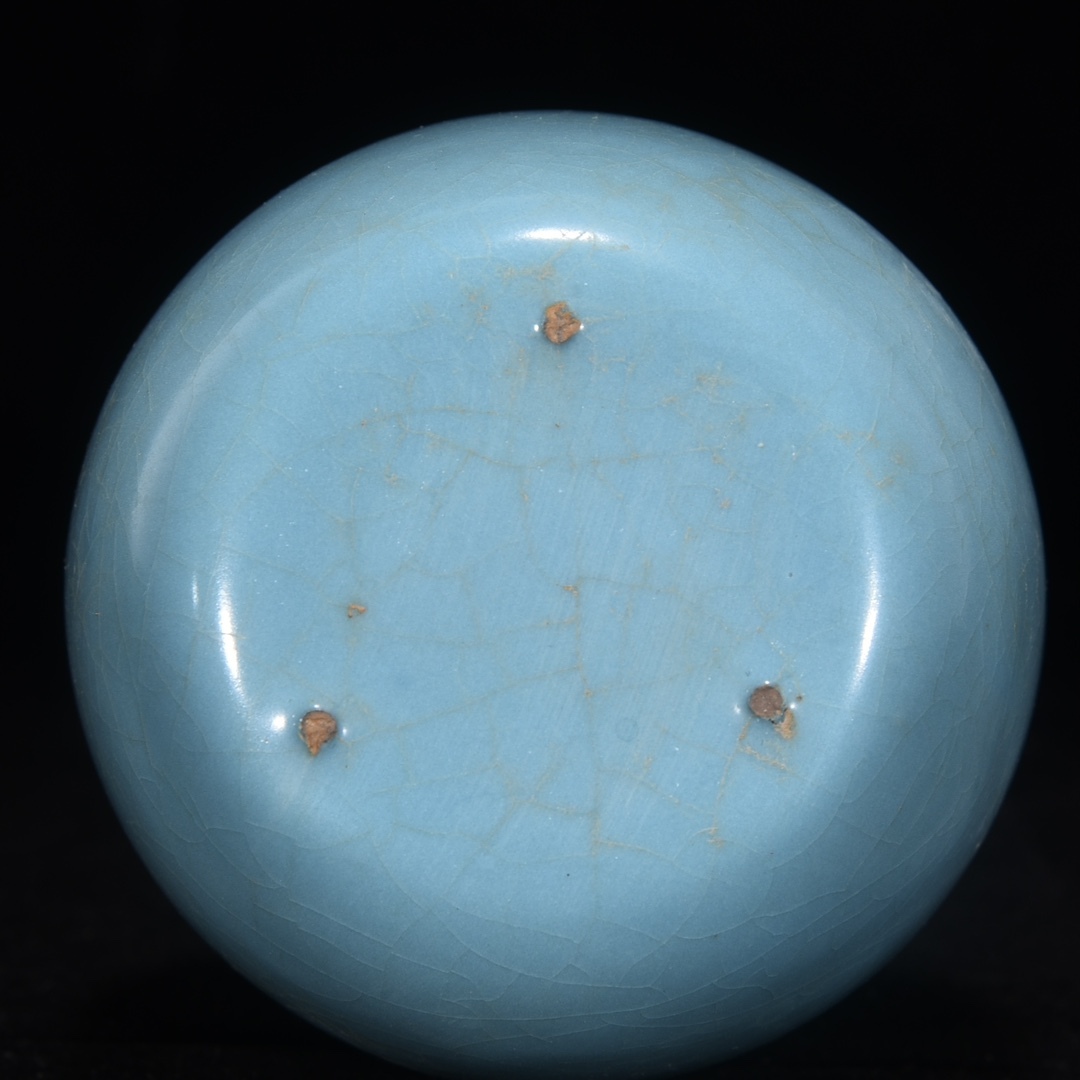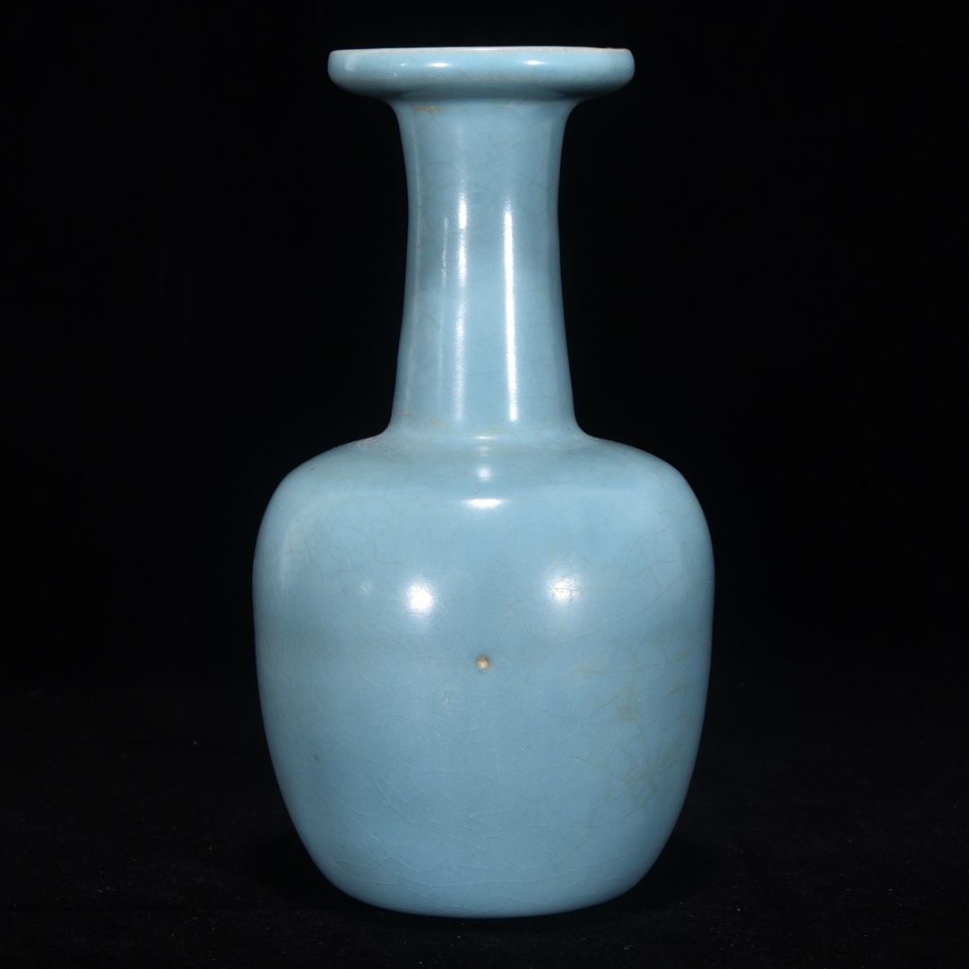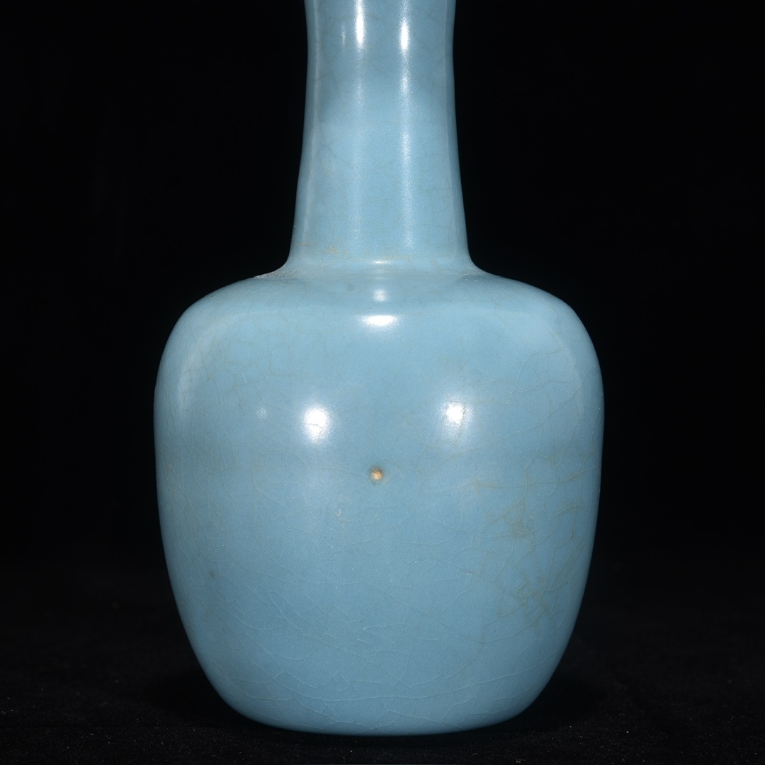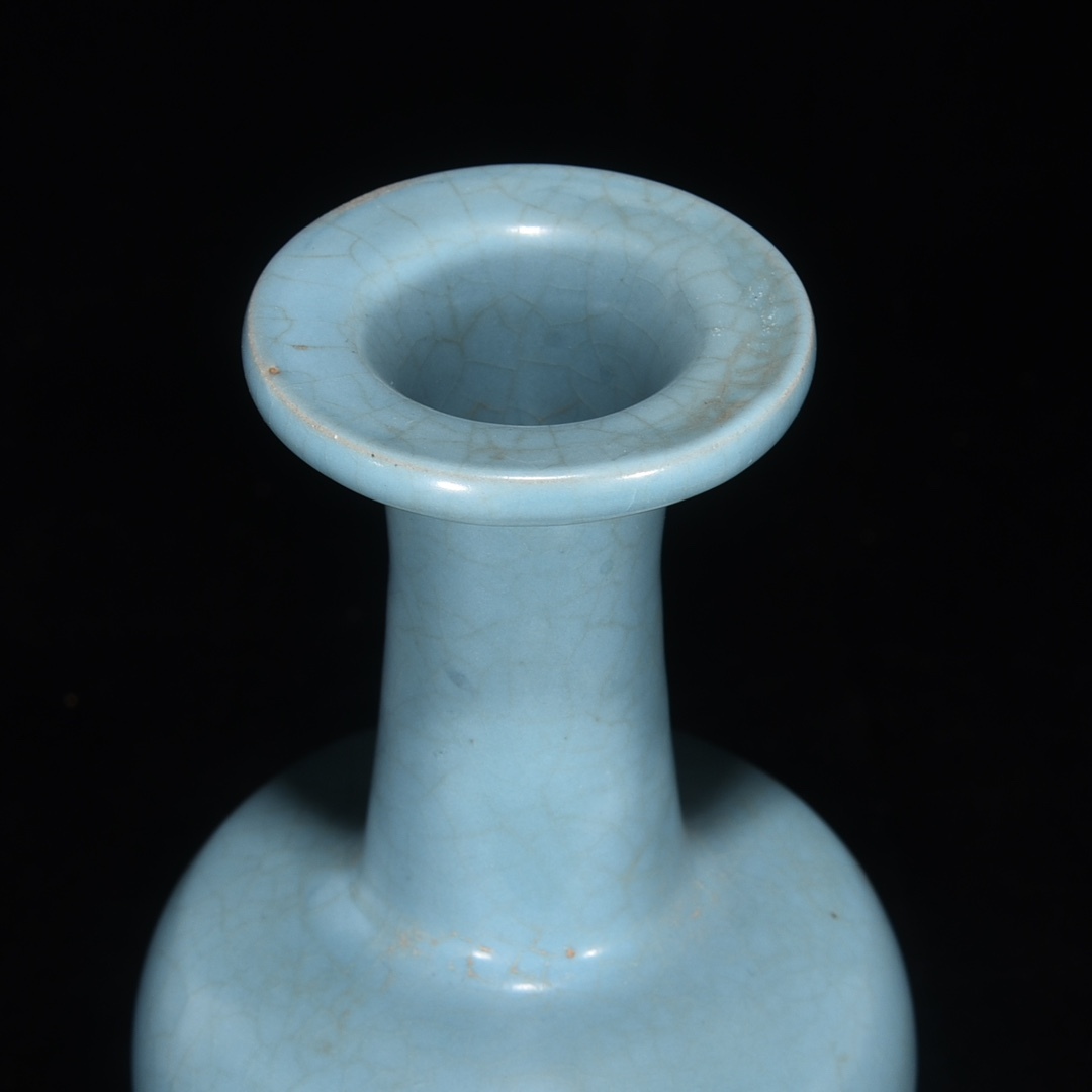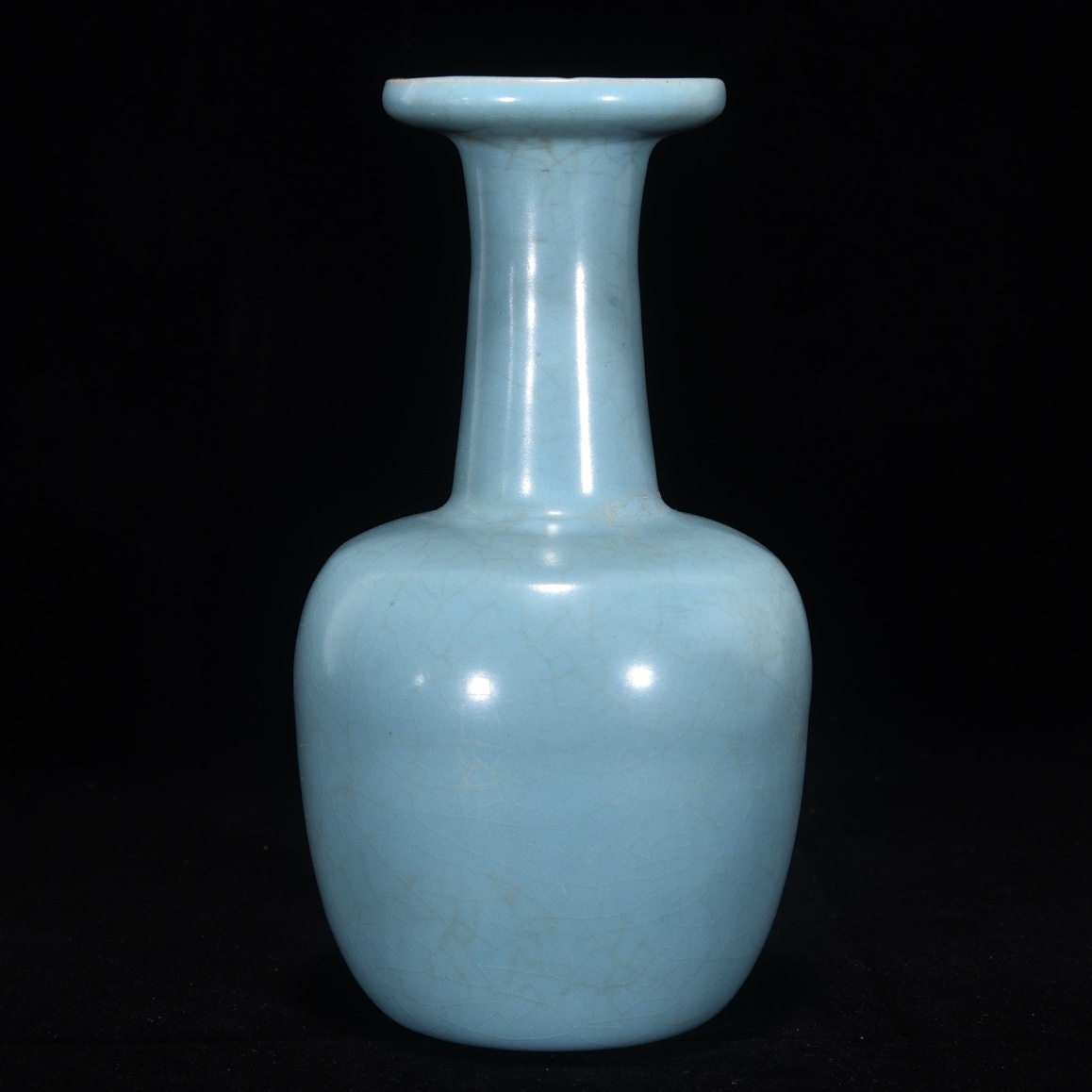 唐物 宋 汝窯 藍釉盤口瓶 陶芸 古陶磁器 中国磁器 極細工 中国古玩 骨董品 古美味 D611