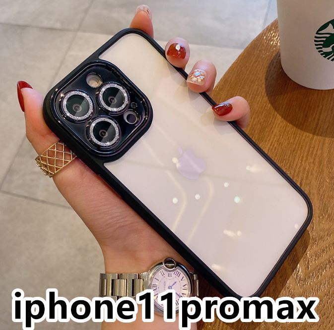 iphone11promaxケース カーバー レンズ保護付き 透明 お洒落 韓国 軽量 ケース 耐衝撃 高品質 ブラック