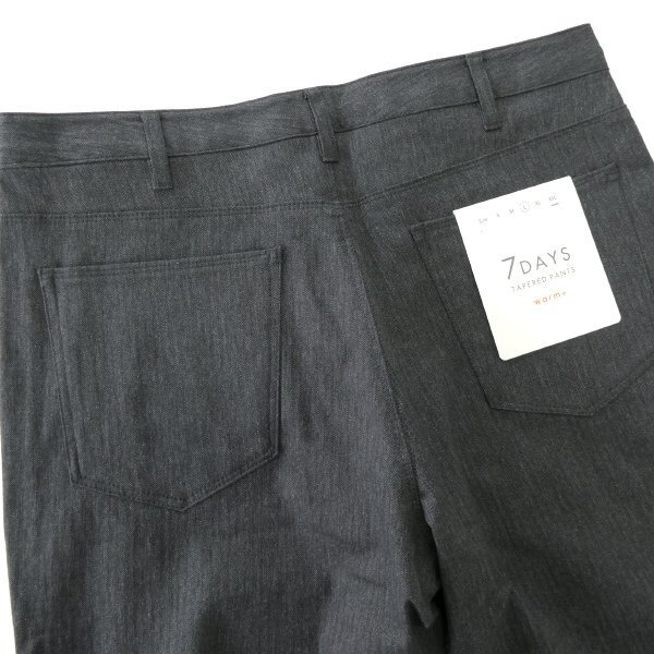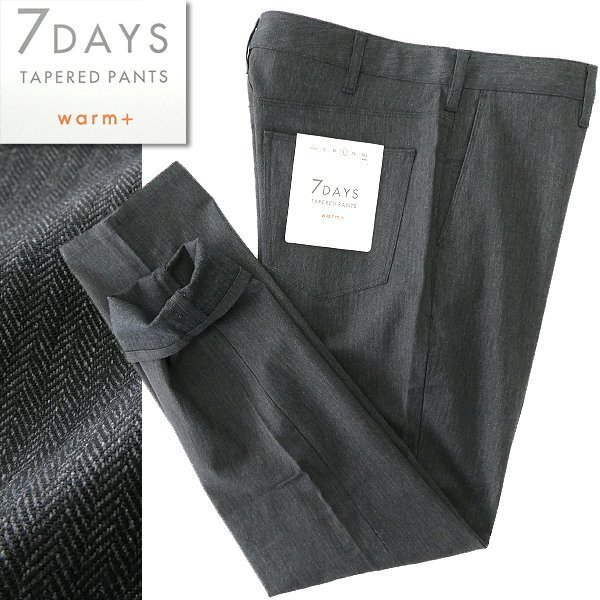 裏起毛で暖かみがあるWARMバージョンの7DAYSパンツです。 無地に見えますがヘリンボーンの織り柄が入っており、ONにもOFFもシーンレスで着用できます。 裏面に起毛かけた心地よいタッチ感と、ストレッチ素材による快適な穿き心地が病みつきになります。 ピタッとしない、かつ上品なテーパードシルエットでスッキリとした印象を与え、ジャケットスタイルにも最適です。 ウエスト内側にはシャツインした際のズレ防止になるゴム製のマーベルトを搭載しています。 【デザイン】 ・ノータック ・ジッパーフライ ・テーパードシルエット |