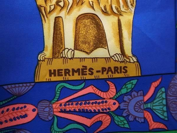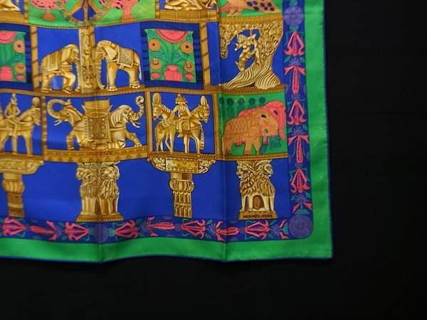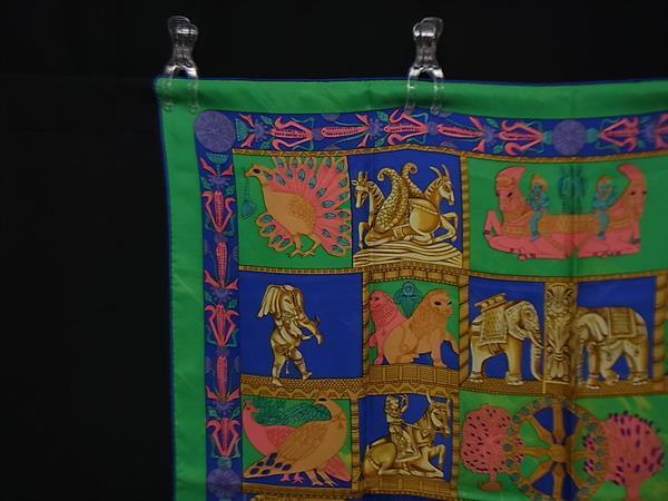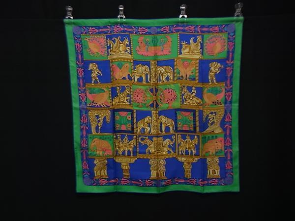 1円 HERMES エルメス TRANA 【塔門】 カレ90 シルク100% 大判 スカーフ ストール ショール レディース グリーン系×マルチカラー FU4722