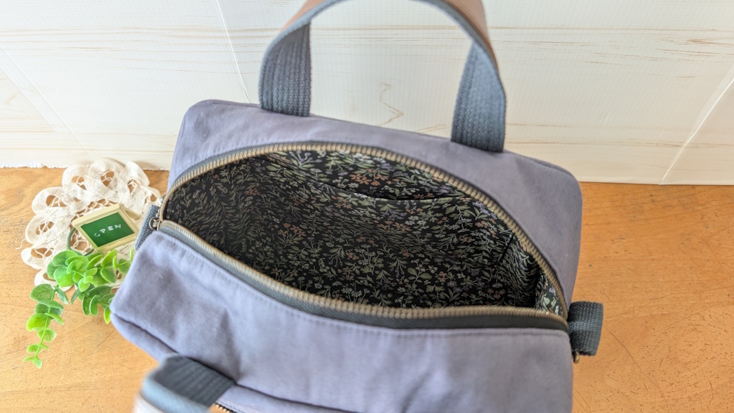 表布には接着芯とキルト芯、内布にも接着芯を貼っています。
