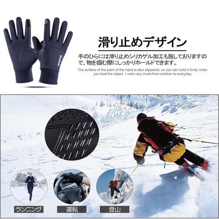 【滑り止めの設計】手袋のひらの部分には滑り止めシリコンを採用しているため、滑り止め効果があります。手袋と物の摩擦力がアップします。汗で湿ったグローブでも、物を掴む際にしっかりホールドできます。運転するとき、ハンドルの制御力も高めます。車の運転、自転車の通勤、登山などのアウトドア活動をする時には最適です。