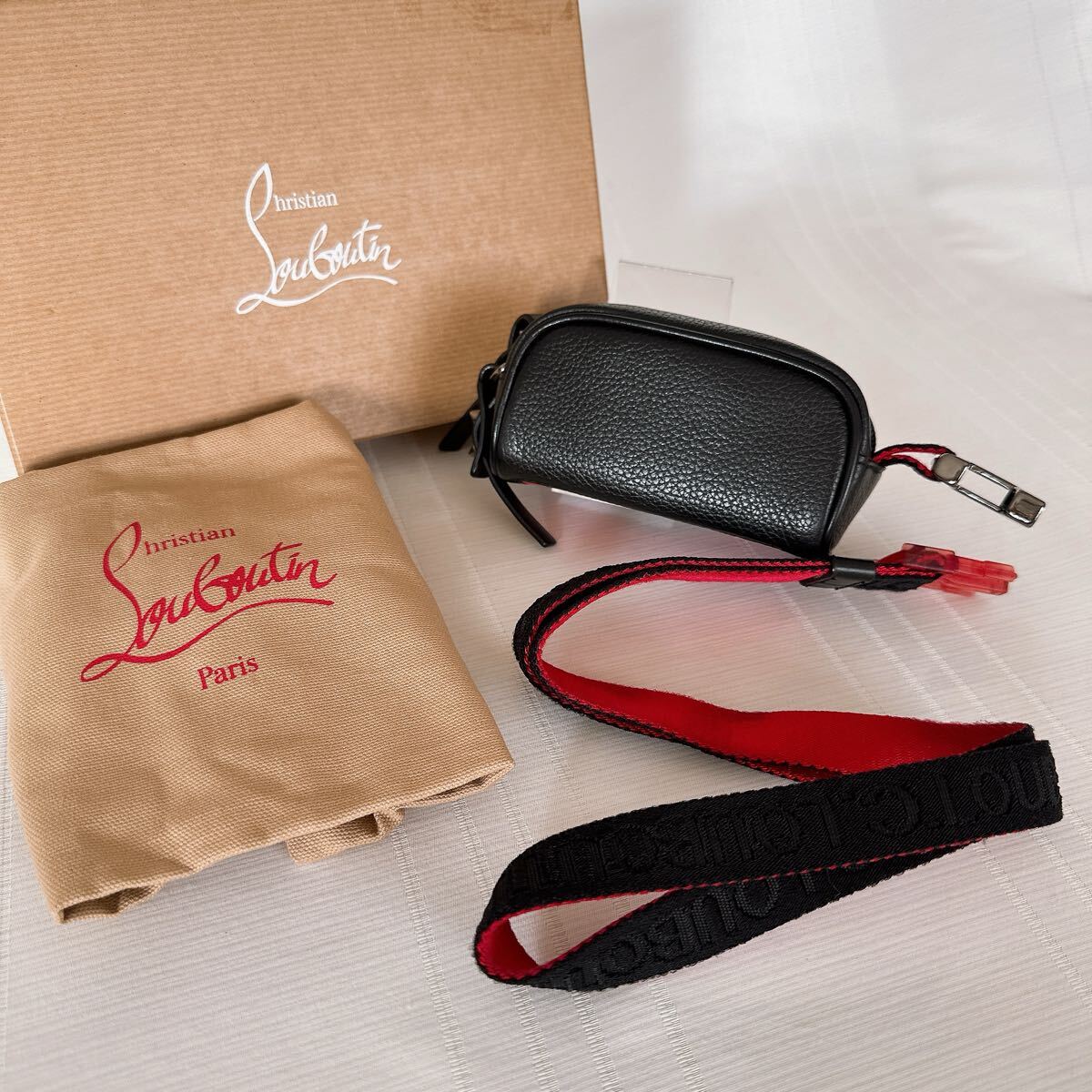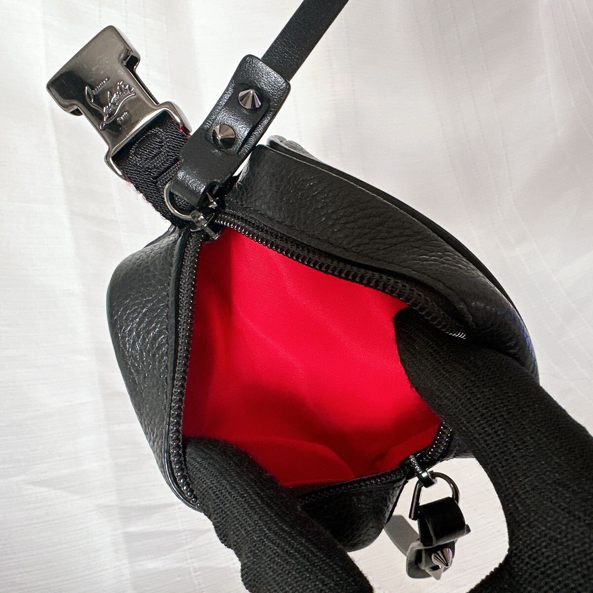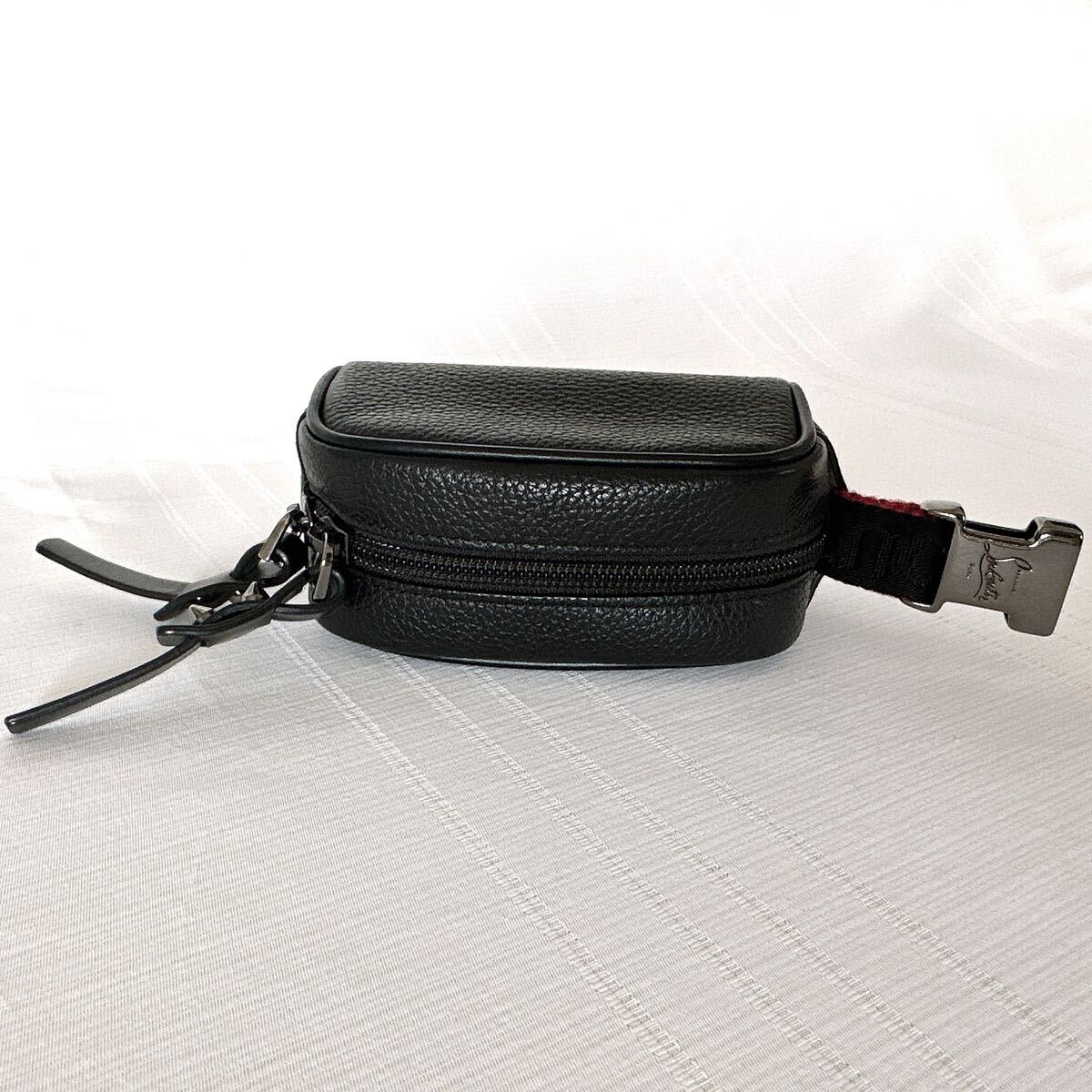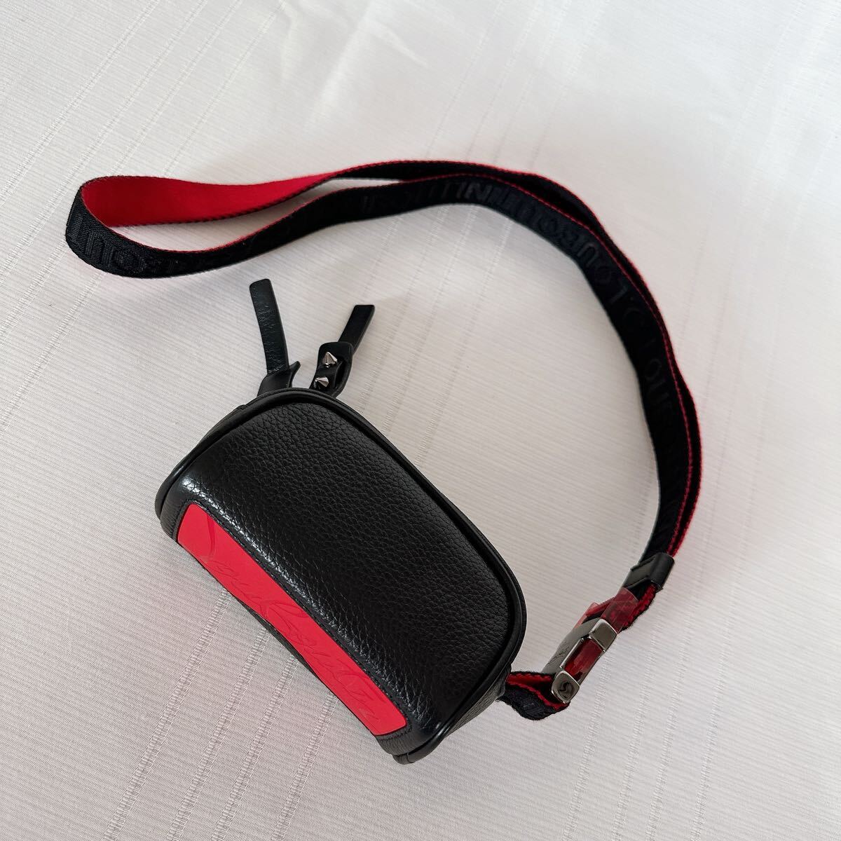 クリスチャン ルブタンらしさを細部まで詰め込んだ、大胆な印象のポーチです。底面にはメゾンが誇るレッドソールを想わせるラバーベースにロゴをデボス加工し、ナチュラルレザーで仕上げました。ショルダーストラップ部分は取り外し可能です。