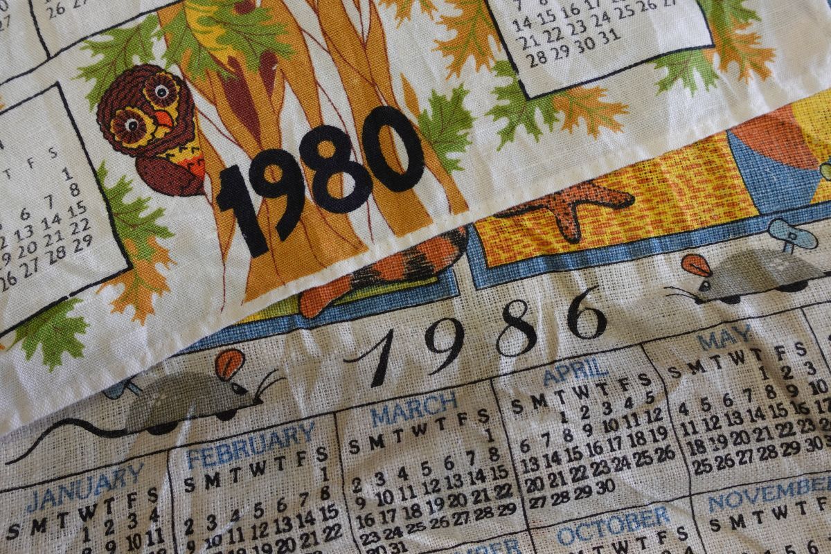アメリカで買い付けたMISC-MIX7 80s vintage レトロ タペストリー カレンダー キッチンクロスになります。