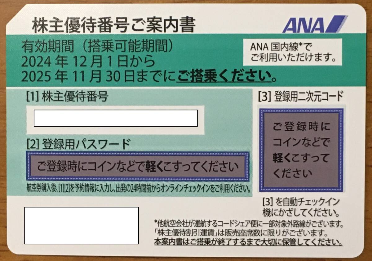 【即日番号通知】全日空 ANA 株主優待券 1枚~9枚(2025年11月30日まで)