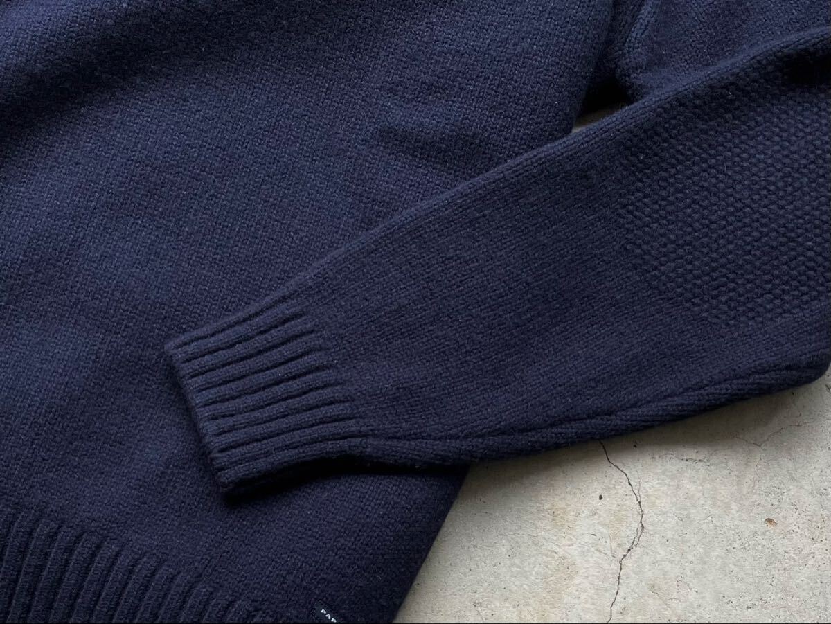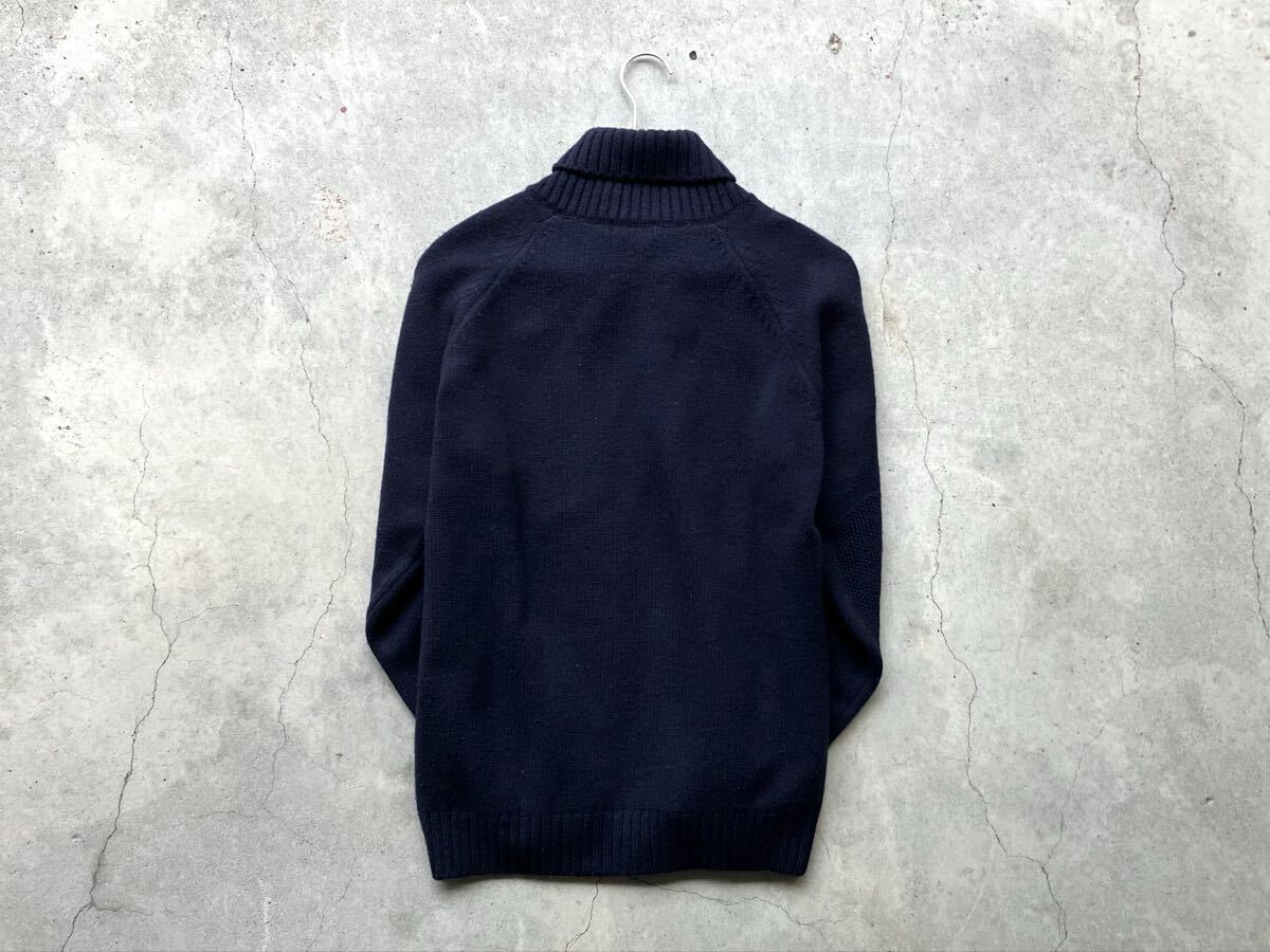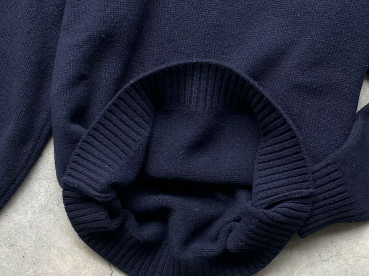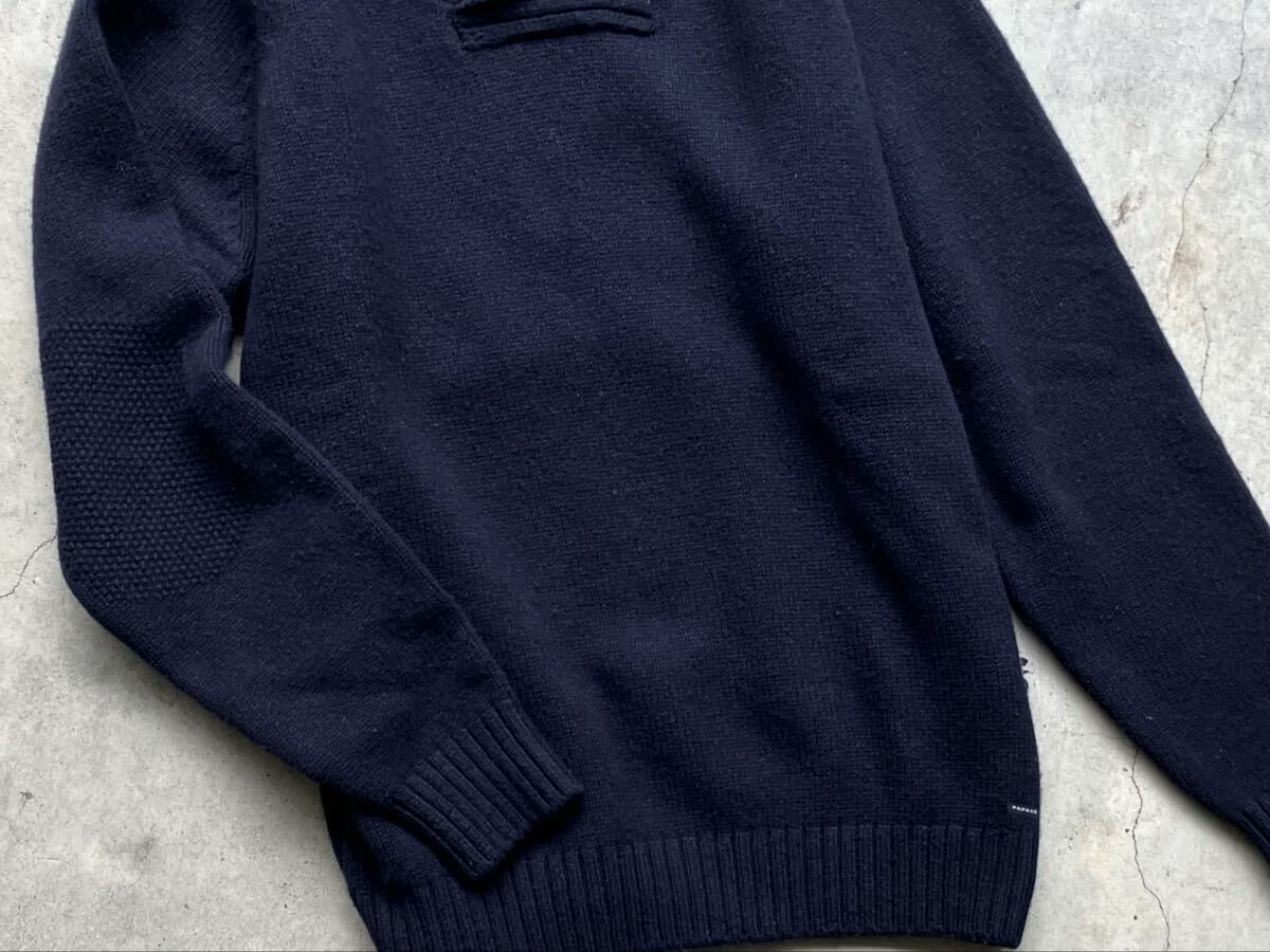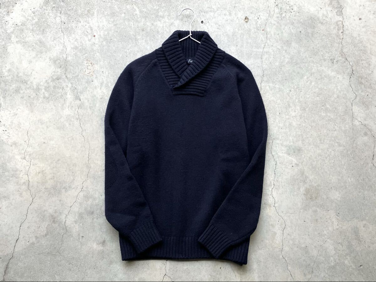 PAPAS PLUS ショールカラー仕様 カシミヤ混 ウールニットセーター M パパスプラス メンズ 紺 ネイビー