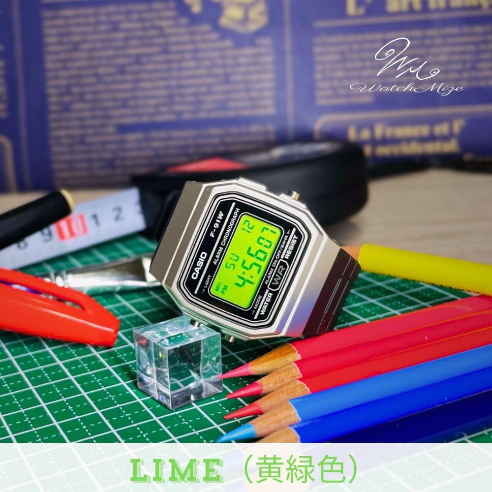 ご覧いただきありがとうございます! CASIO Collection F-91WM-7AJH 『ライム液晶』カスタム 【カラーバリエーション】 ①ブルー ②グリーン ③ピンク ④ライム ⑤パープル ⑥レッド ⑦イエロー ⑧グレー ※こちらのページは、『ライム液晶』の販売ページとなります。 その他の色はマイページよりご購入頂けます。 ・「周りと違った腕時計を身に付けたい方」 ・「推しのカラーの腕時計を身に付けたい方」 ・「好きな色の腕時計をお探しの方」 ・「日頃のコーディネートに合わせた腕時計をお探しの方」 ・「自分だけのオリジナル腕時計をお探しの方」 ・「カップルや友達同士で色違いやお揃いの腕時計を身に付けたい方」等 お好みのカラーの液晶で腕時計ライフをより充実させてみませんか? こちらで取り扱っている腕時計は、全てカシオ正規品であり、液晶部分以外は何も触っておりませんので、国産時計の高品質な腕時計をお楽しみ頂けます! |