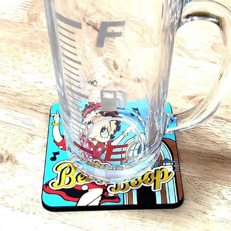 「ラバーコースター BT-MUSIC」 アメリカの有名キャラクターベティ・ブープがデザインされたかわいいラバーコースターです! ラバー素材ですので滑りにくく、水洗いもできて実用性抜群です。 家族や友達と共有できるので全種類揃えるのもgood! ご自宅はもちろん、カフェやバーなどお店でのご使用にもぴったりです。 いかがでしょうか? |