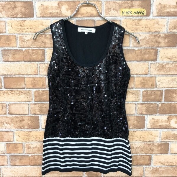 PINKY&DIANNE ピンキーアンドダイアン レディース スパンコール付き ボーダー ノースリーブTシャツ 38 黒