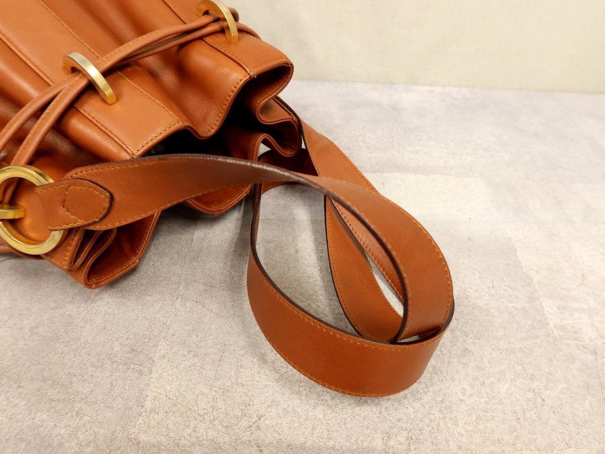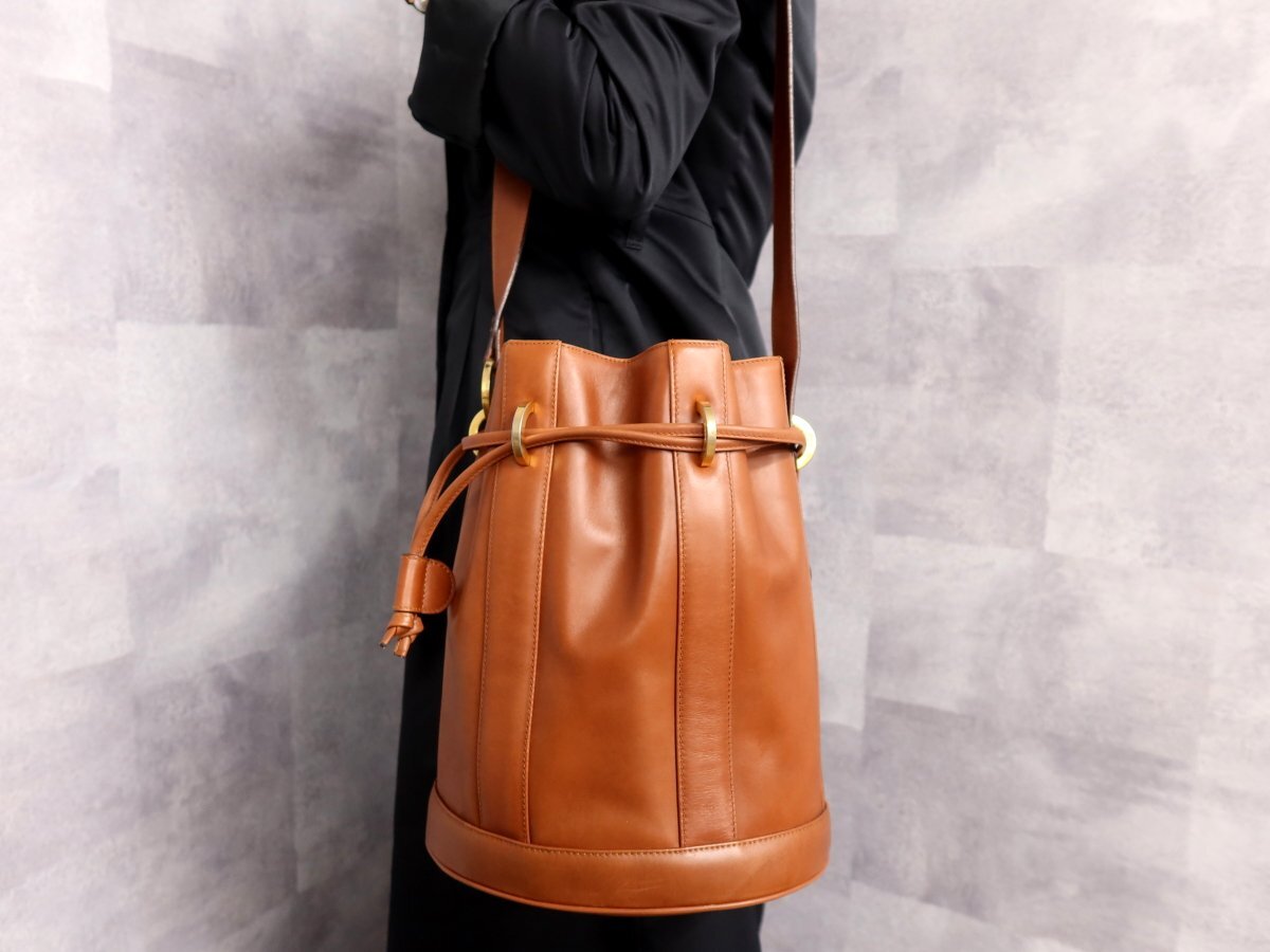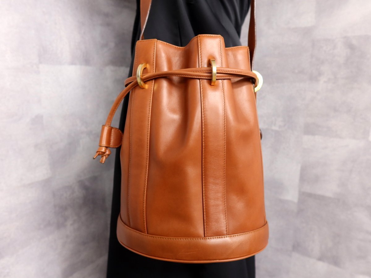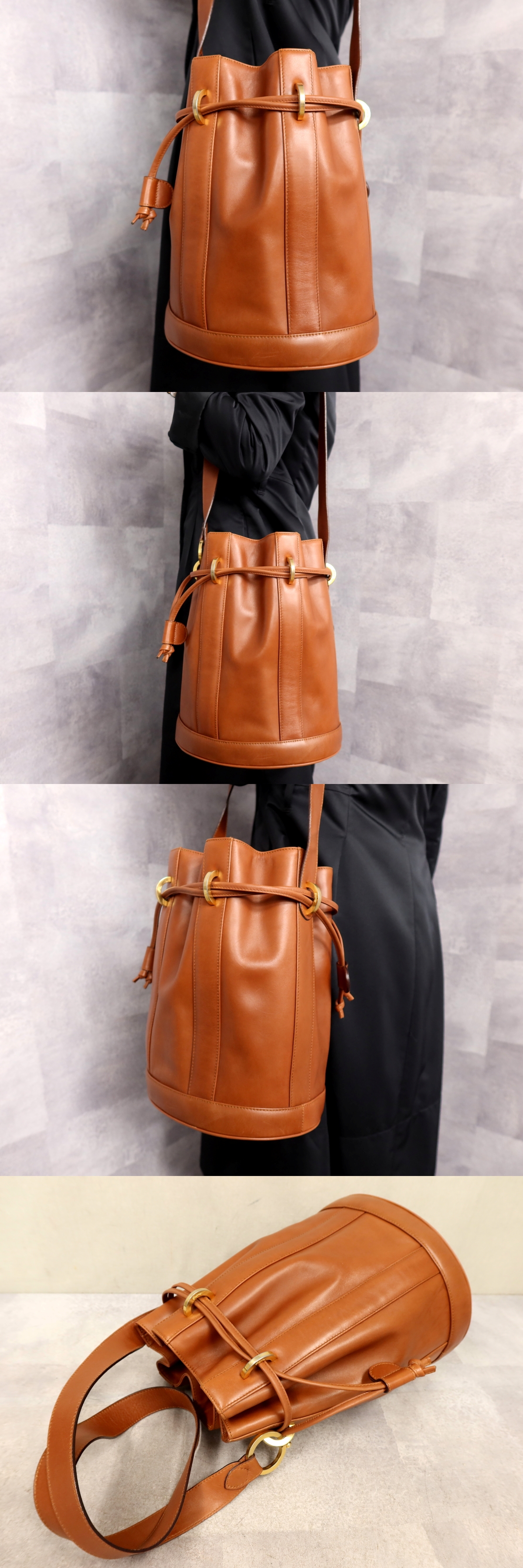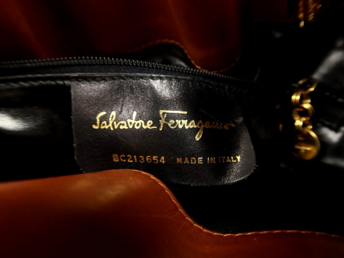 ●超美品●Salvatore Ferragamo フェラガモ●カーフ レザー 本革●巾着 ショルダー バッグ●ブラウン●ゴールド金具●収納 かばん●Js62183