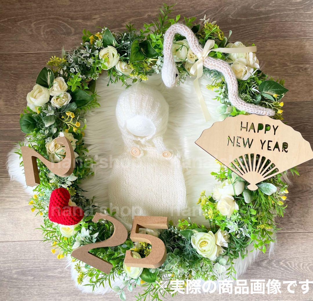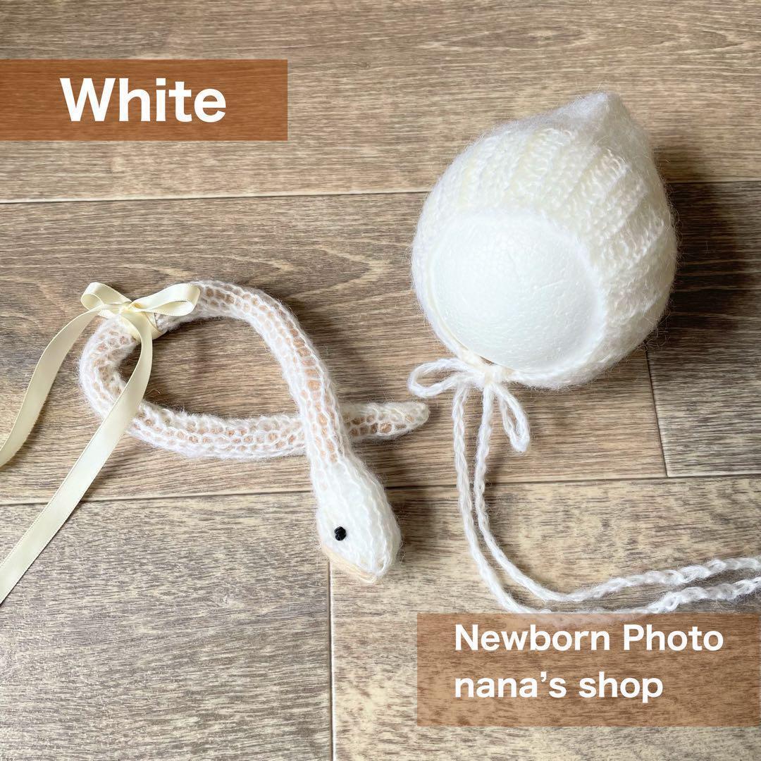 ニューボーンフォトのコスチューム、シンプルなヘビボンネットとへびあみぐるみの2点セット。