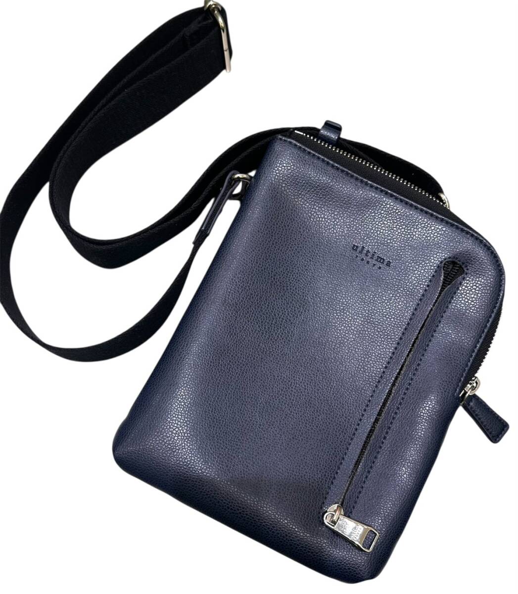 | ◆ビジュ良し機能良し! 美品! ultima TOKYO ウルティマ トーキョー レザー ショルダーバッグ 斜め掛け メンズ ネイビー【600AM】K08 | ||