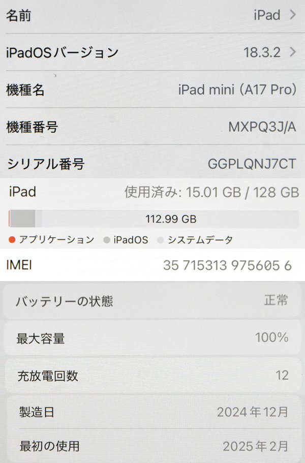 | ★充放電回数12回!元箱付!Apple アップル iPad mini Wi-Fi+Cellular 128GB MXPQ3J/A スターライト 利用制限「-」★ |