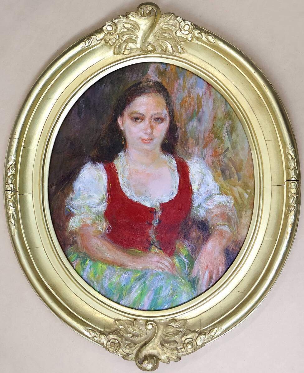 画家:伊藤清永 タイトル:赤いベスト 技法:キャンバスに油彩 画面サイズ:52.5×44㎝ 額サイズ:69×60㎝ サイン:左にサイン コンディション:概ね良好 伊藤清永 (いとう きよなが) 1911年 兵庫県出身 1928年 愛知中学校卒業後、画家を志して上京 岡田三郎助の門に入り本郷洋画研究所に学ぶ 1931年 槐樹杜展入選 1933年 帝展初出品初入選 白日会10周年記念展白日賞受賞 1935年 東京美術学校油彩科卒業 1936年 白日会会員に推挙 文部省美術展覧会選奨受賞 1940年 愛知中学校講堂に大壁画完成 1945年 復員後、兄に代わり吉祥寺の住職代理を務める 1947年 兵庫県立出石高等女学校図画教員嘱託 日展特選受賞(同48年) 1953年 伊藤絵画研究所を創設(~72年閉鎖) 1955年 個展開催「花と裸婦展」(高島屋、同59、70年) 1956年 個展開催「新作絵画展」(日動画廊) 日展審査員(同66、69、75年) 1957年 愛知学院大学教授に就任 1962年 渡欧、パリ滞在後、オランダ国立美術学校で制作 ピカソの画商であり評論家のカーシワイラーの知遇を得る 1963年 個展開催「滞欧作品展」(日本橋東急) 1964年 京都川島織物メモリアルホール壁画「私たちの誓い」を制作 東京都美術館作品買上げ 1971年 渡欧、イタリア滞在後 1976年 日展内閣総理大臣賞受賞 1977年 日本芸術院賞恩賜賞受賞 文化庁買上、日本芸術院所蔵 日展理事に就任 1978年 文化庁「全国県展文部大臣賞」選考委員に就任 1979年 紺綬褒章・木杯を授与 1980年 愛知県美術館作品買上げ 1981年 個展開催(銀座松屋、神戸大丸) 1984年 勲四等旭日小綬章受章 釋尊伝四部作大壁画を制作(愛知学院大学百周年記念大講堂収蔵) 日本芸術院会員に任命 1986年 白日会会長に就任 1987年 兵庫県町村合併30周年記念「現代洋画壇の重鎮・伊藤清永展」開催 1989年 兵庫県出石町に伊藤美術館開設、同町名誉町民となる 生家吉祥寺の山門落成、本堂天井画「飛天」「風神雷神」奉納 兵庫県文化賞受賞 1991年 文化功労者に顕彰、日展顧問に就任 1996年 式年遷宮記念神宮美術館企画運営委員会委員となる 文化勲章受章 1997年 「鮮麗なる裸婦の輝き伊藤清永展一文化勲章受章を記念して」開催 但馬の児童を対象に「伊藤清永賞子ども絵画展」創設 2001年 卒寿記念「伊藤清永展」(東京、京都、大阪、名古屋、横浜高島屋巡回) 没(享年89歳) 所蔵/東京都現代美術館、愛知県美術館、佐久市立近代美術館、 愛媛県立美術館、北九州市立美術館、伊藤清永美術館、 彫刻の森美術館、山種美術館、日本芸術院、他 |