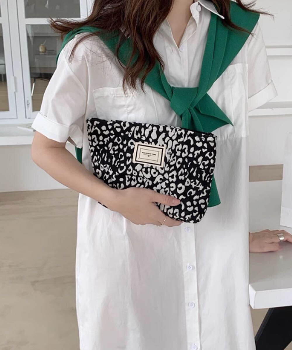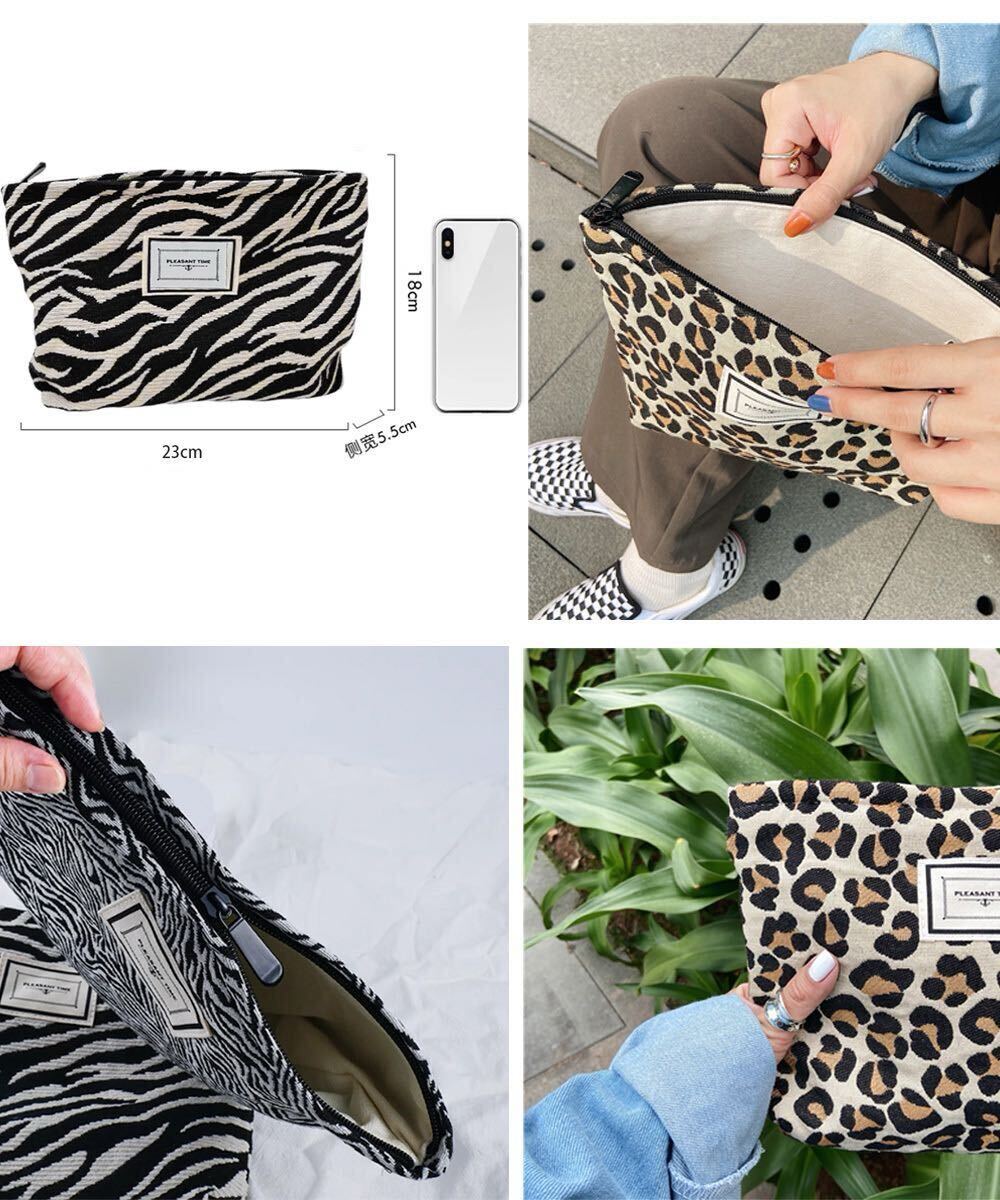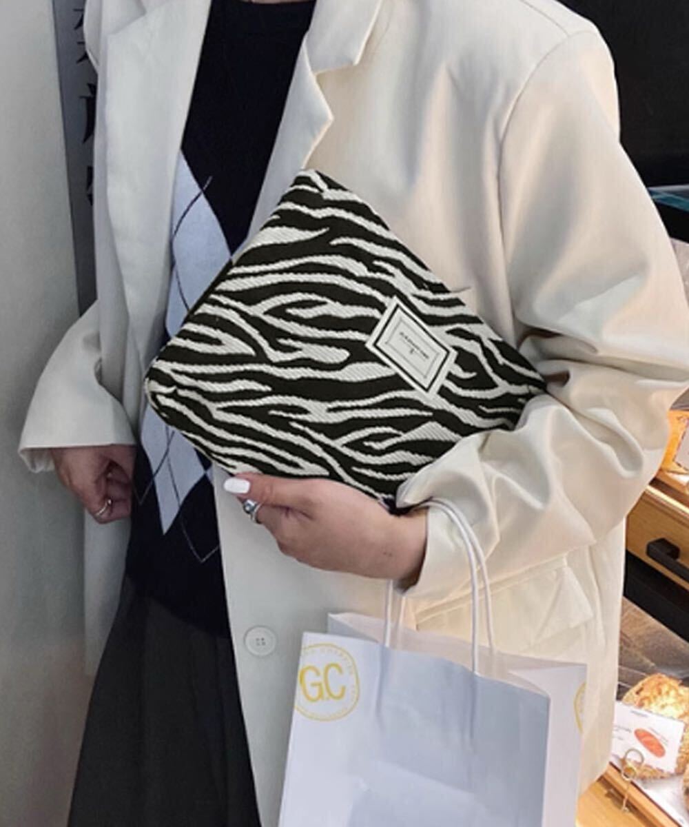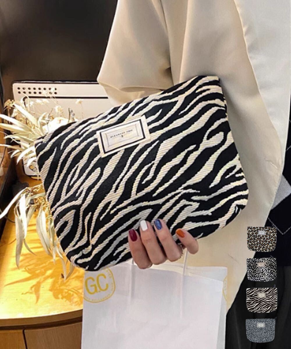 レンド感あふれるアニマル柄が目を引く、おしゃれなクラッチポーチ