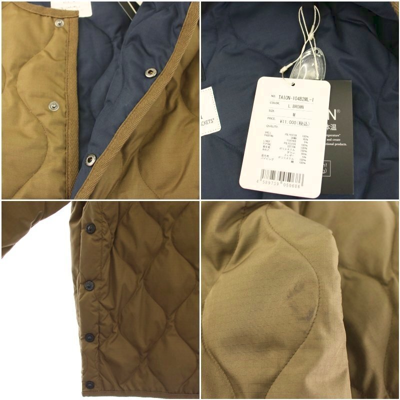 未使用品 タイオン TAION ミリタリー クルーネック ダウンジャケット インナーダウン ノーカラー M 茶 ブラウン 104B2ML-1