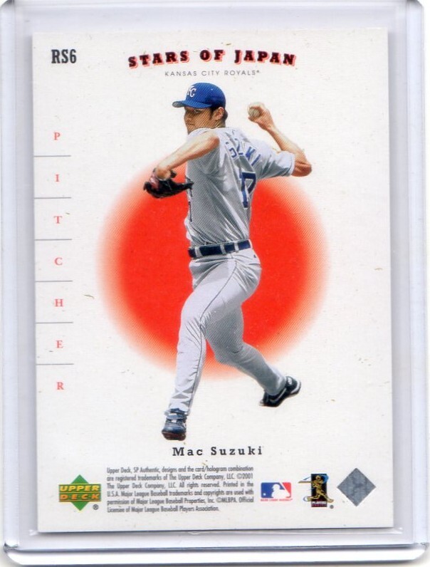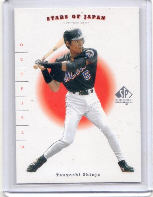 2001UD SP AUTHENTIC STARS OF JAPAN #RS6 新庄剛志 MLBルーキー・カード *裏面:マック鈴木 ------------------------------------------------------------- ■新庄剛志 MLB成績 3年 2001-03年 メッツ ジャイアンツ 303試合 215安打 20本塁打 打率.245 日本人初ワールド・シリーズ出場・安打 新庄ファンの方、是非どうぞ! |