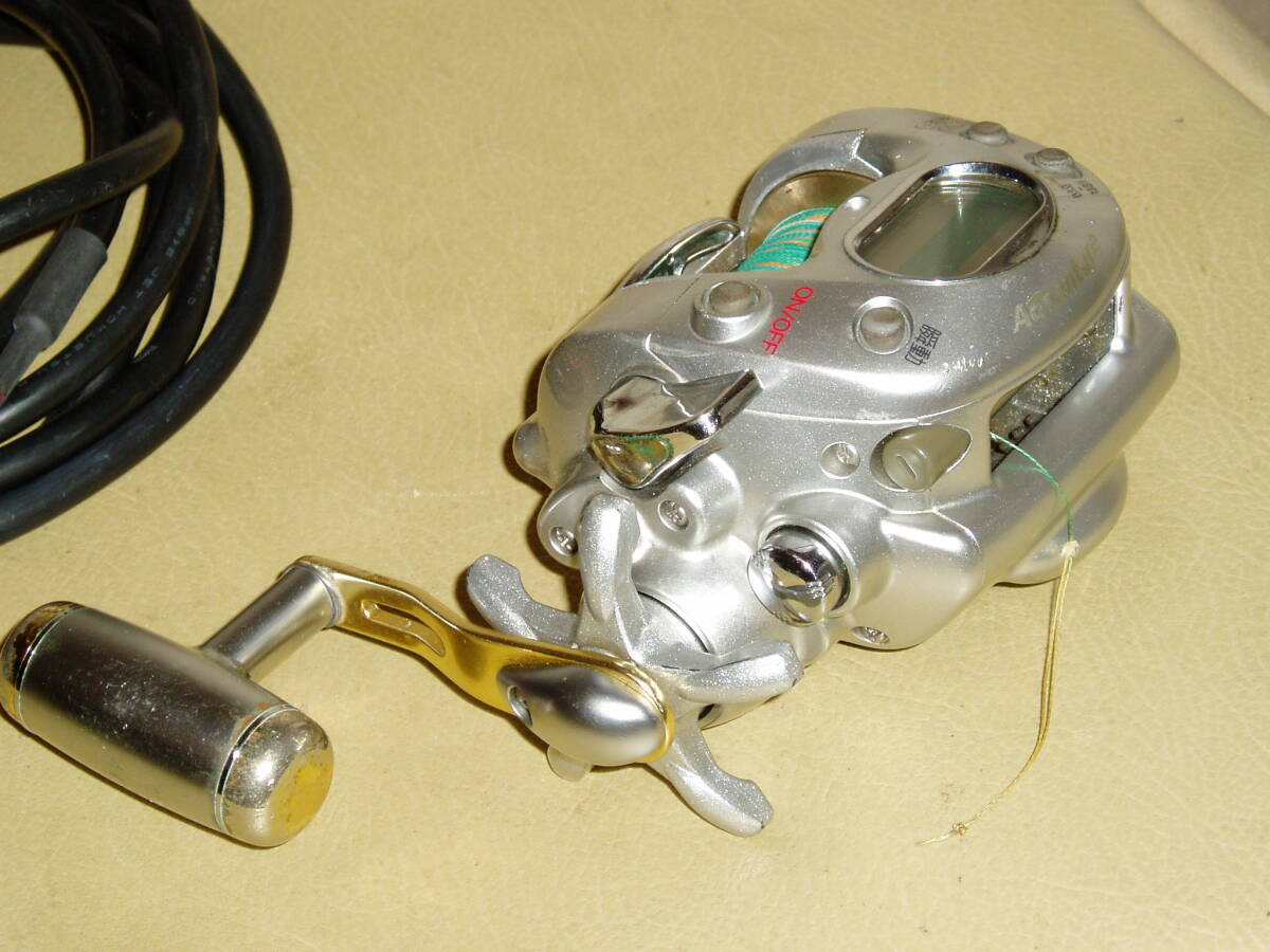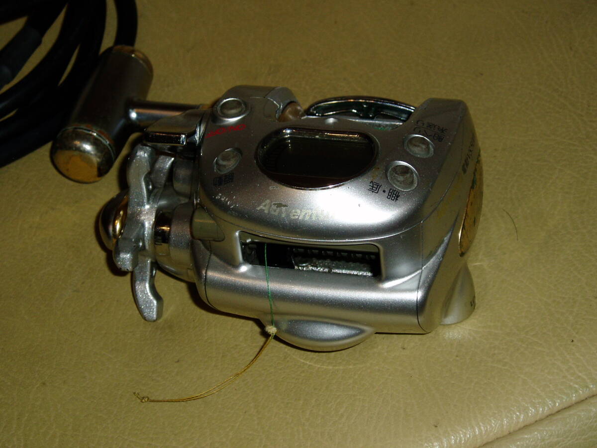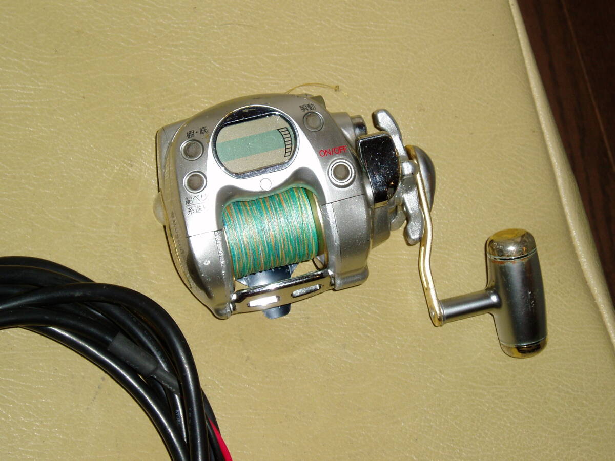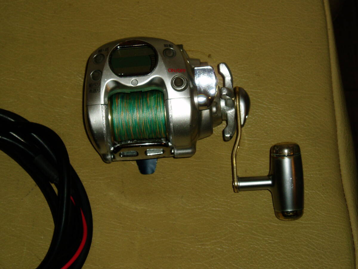 ★使用に伴う傷、錆、使用感はありますが、まだまだ電動巻き上げは問題なく、カウンターも問題なく動きますので使用には問題ない状態です。リール本体で銀の塗装がはがれた個所に錆止めように車の銀の塗料を塗っている箇所があります。あくまで中古品ですので、ご理解いただける方のみ入札ください。(商品の状態は写真でご確認ください)。