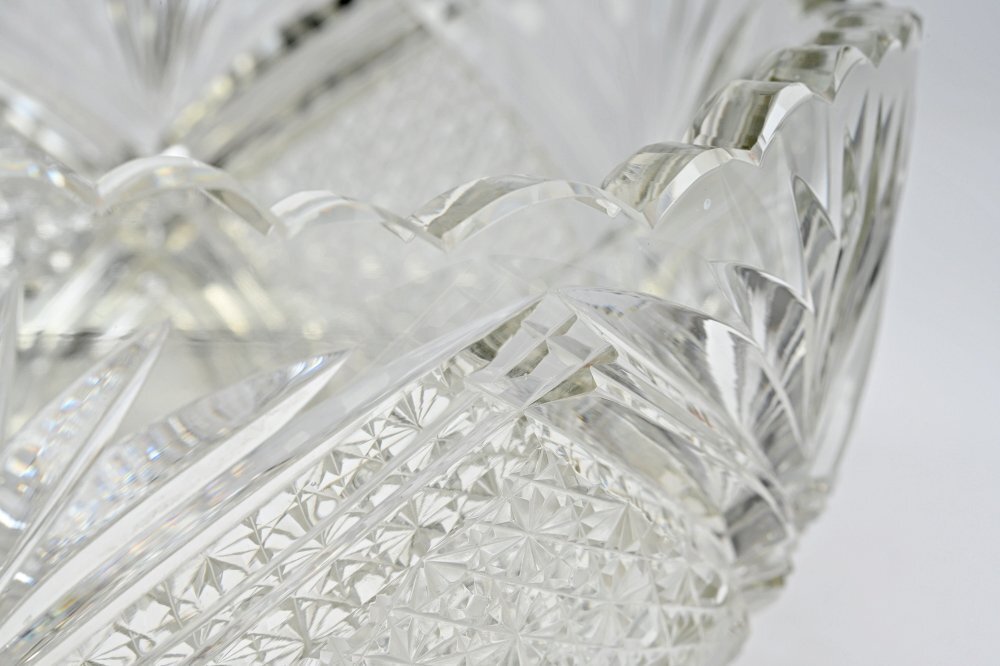 IJ1233■カットガラス 切子 菓子鉢 箱付◆h