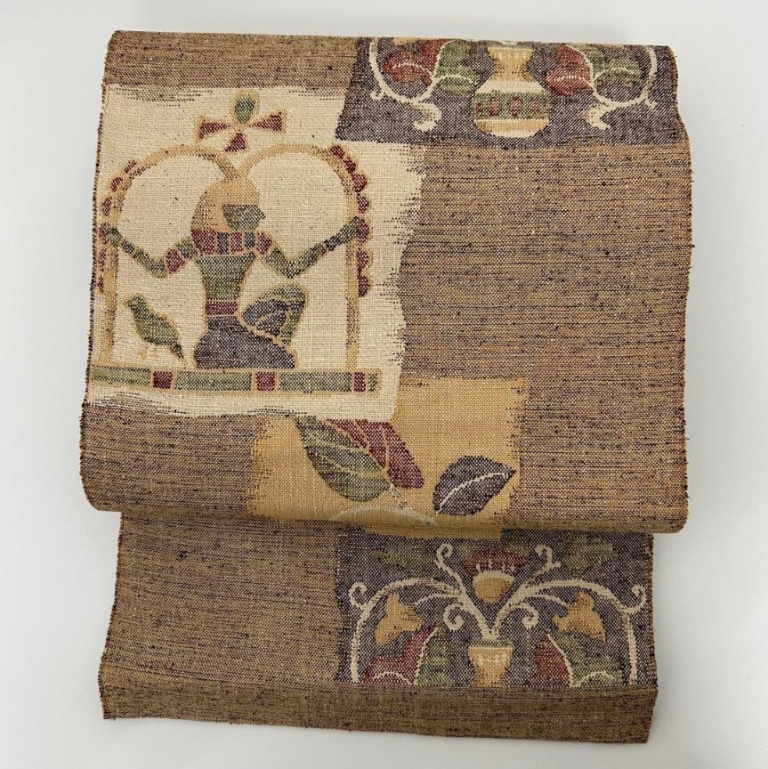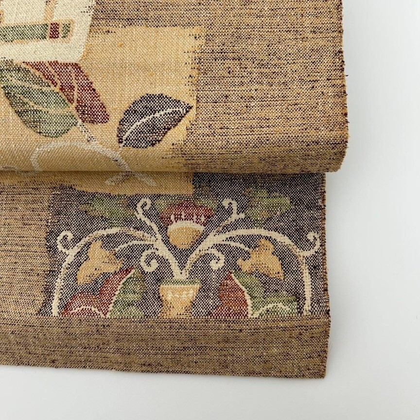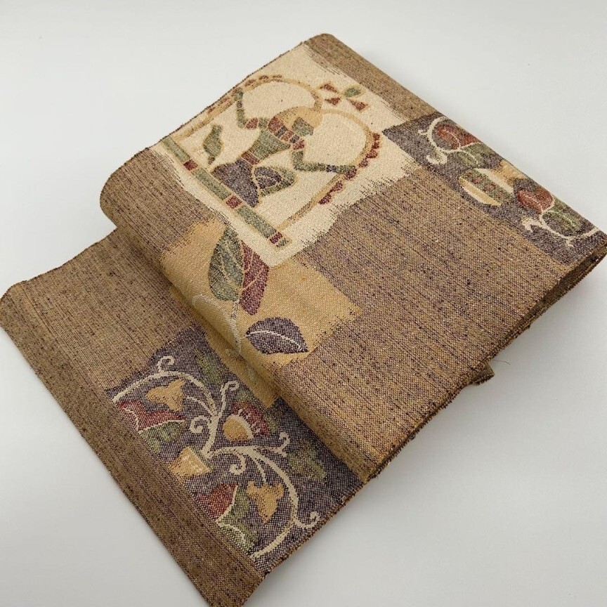 【楓】名古屋帯 真綿紬 コプト文 素敵な織出し 八寸 着物 正絹 KU-7673
