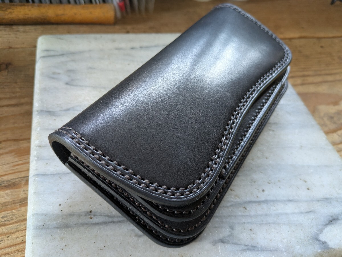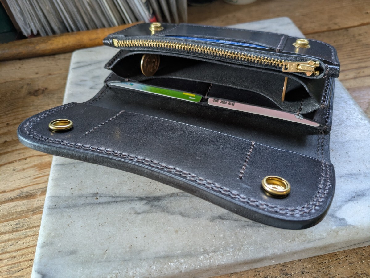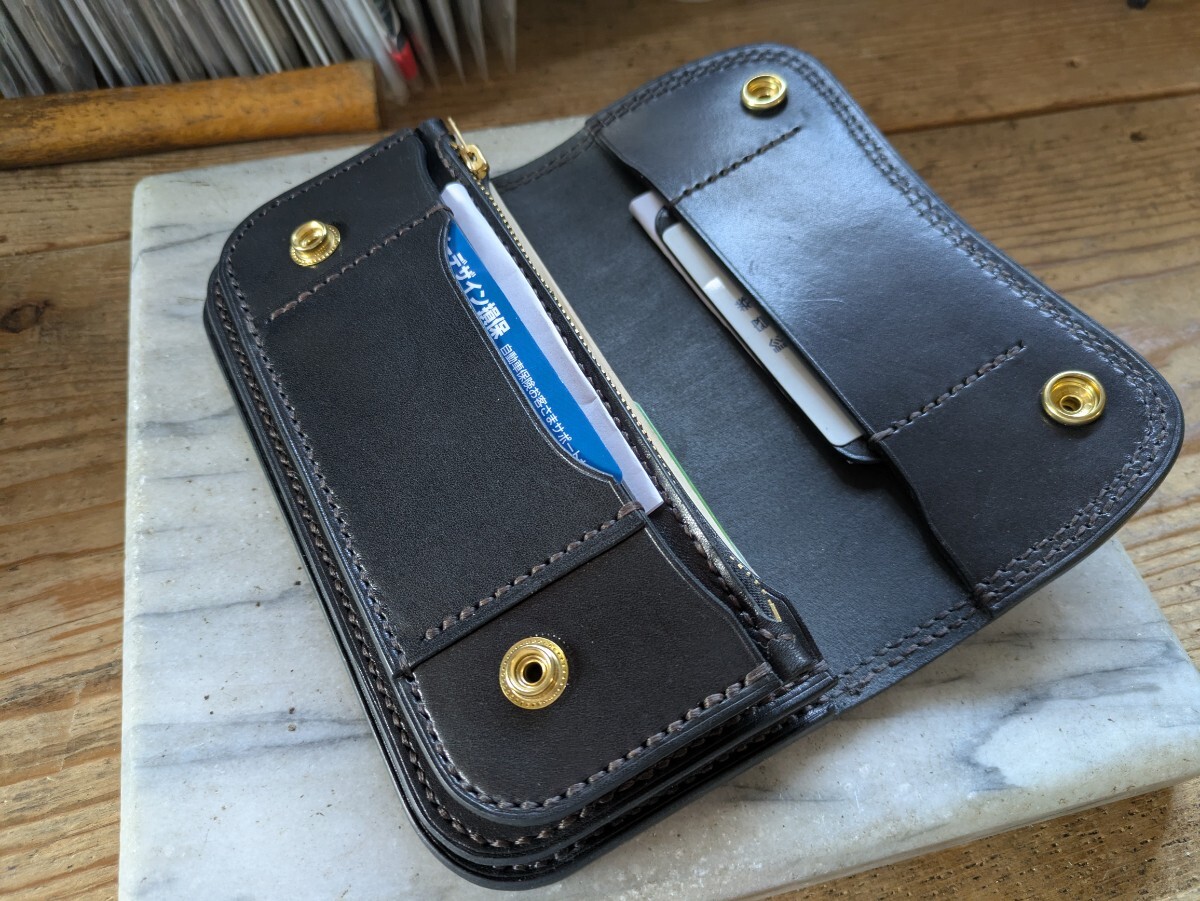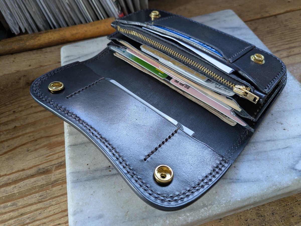 良質な北米産ステアハイド フルベジタブル タンニン鞣しの栃木グレージングサドルレザー ブラックカラー芯通しの革で製作したロングウォレットになります。