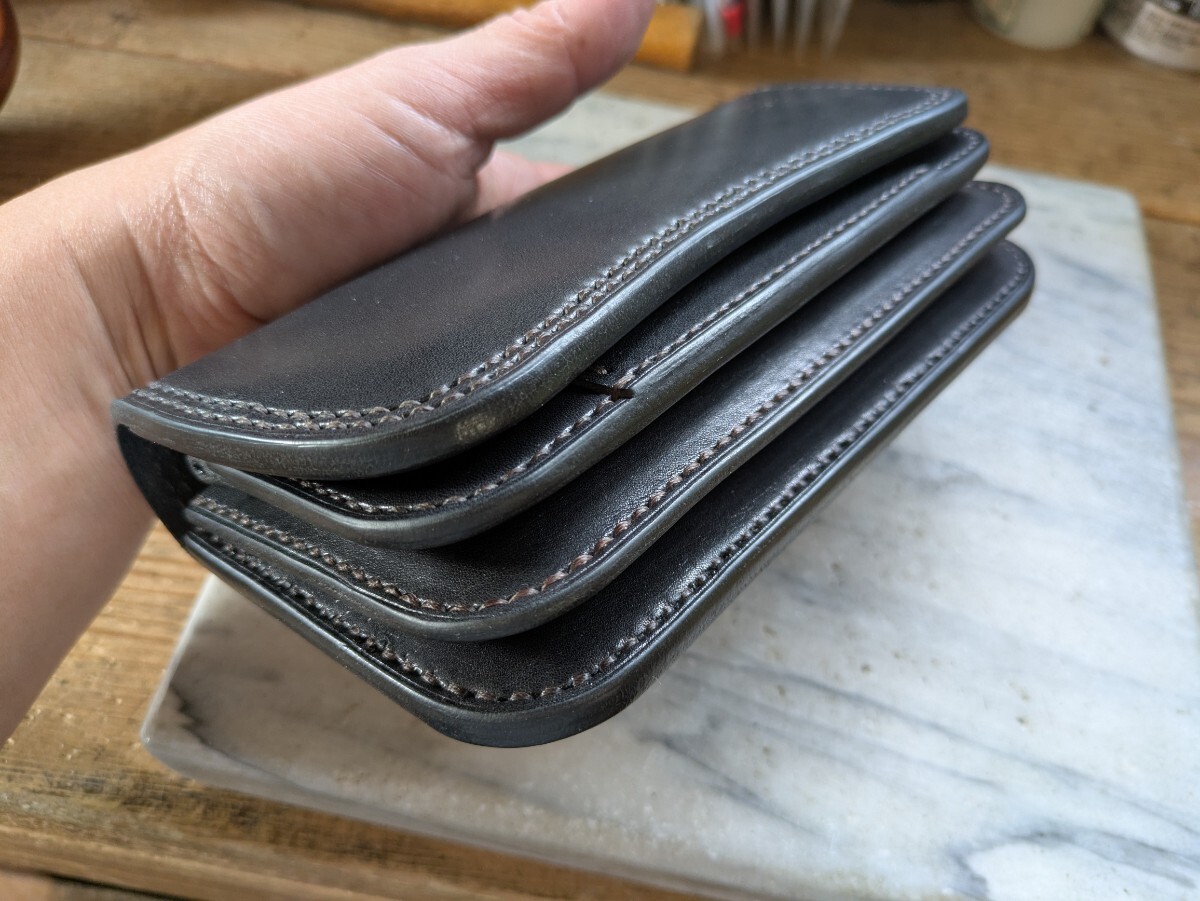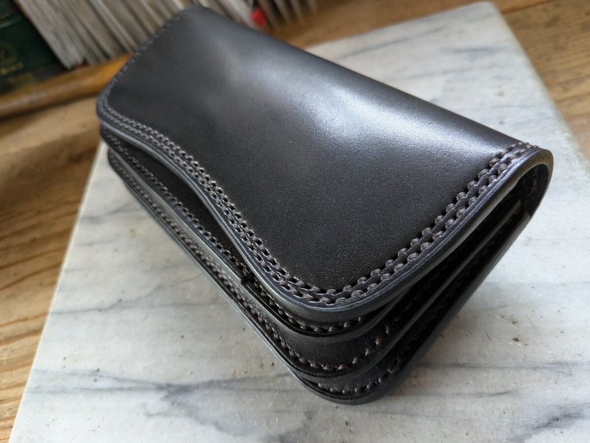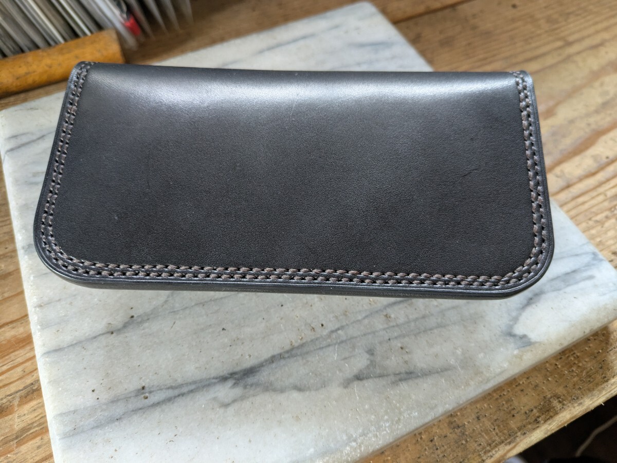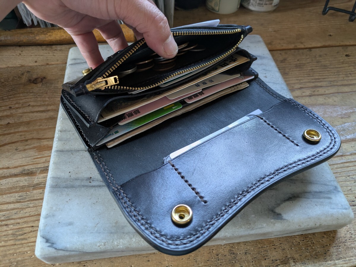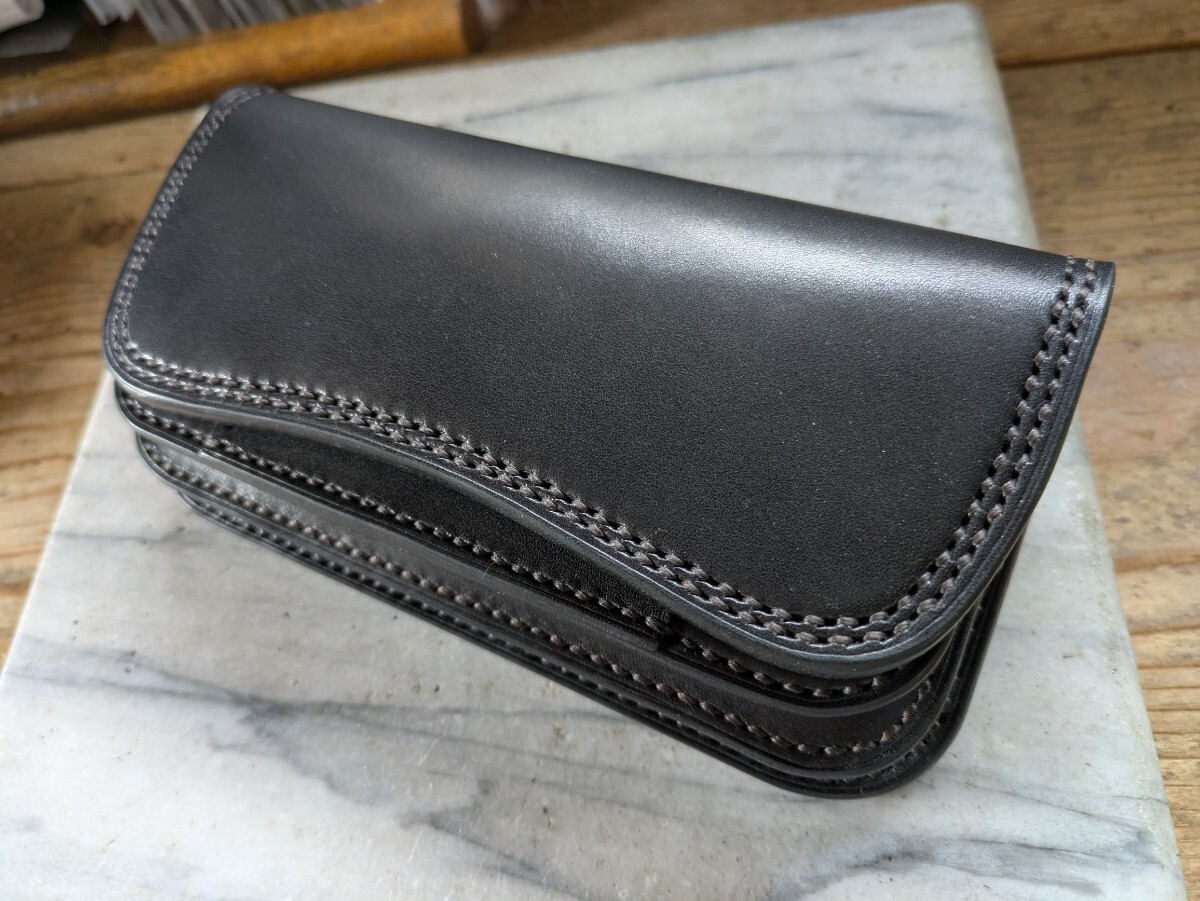 良質な北米産ステアハイド フルベジタブル タンニン鞣しの栃木グレージングサドルレザー ブラックカラー芯通しの革で製作したロングウォレットになります。