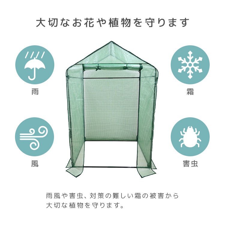 お庭やベランダでガーデニングを楽しみたい方のマストアイテム! 簡単設置!通気性抜群!オールシーズン活躍のガーデンハウスです。 ■オールシーズン、大切な植物を守ります! 冬から春先にかけては、ビニール温室に入れてあげることで、 冷たい風や雪、霜などが、直接当たるのを防ぎます。 屋外飼育のメダカ・金魚の越冬や雨避けにもビニール温室が最適! 猫や鳥などの外敵からも守ります。 ビニールカバー前面には、両サイドファスナーが付いているので、 冬場でも温室内の温度上昇が気になる時には、ビニールを巻き上げ 風通しを良くするなど、 天候に合わせて調節できます。 カバーを固定できる紐つき仕様となっており、巻き上げて作業しやすいように固定できます。 ■工具不要で簡単に組み立て 組立時に道具不要!パイプを差し込むだけで簡単に組み立てができます! 転倒防止のペグ付きで、安全にご使用頂けます。 【商品詳細】 サイズ(約):高さ197×横幅125×奥行95cm 重量(約):3.3kg 素材:スチール、PVC 他 【注意事項】 ・強風の際には外での使用をお控えください ・商品はモニターによって色合いが異なって見える場合があります。 ・仕様/デザインは改良のため予告なく変更することがあります。 (ビニール温室 温室ハウス 簡易温室 ガーデニングラック ガーデニングハウス 園芸 植物 花だん 花壇 菜園 雨よけ 霜よけ) |