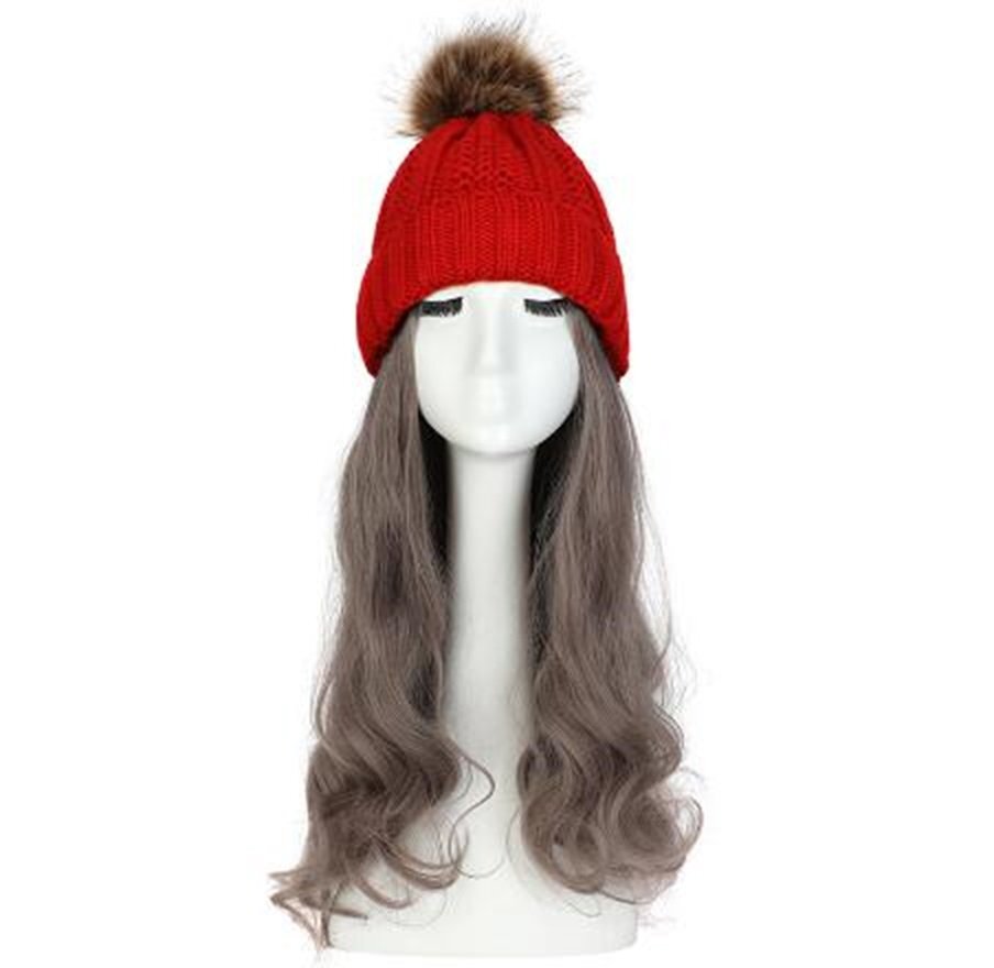 ウィッグ付きニット帽 ニット帽/レッド ウィッグカラー/H ロングヘアー イメチェン 髪色チェンジ コスプレ