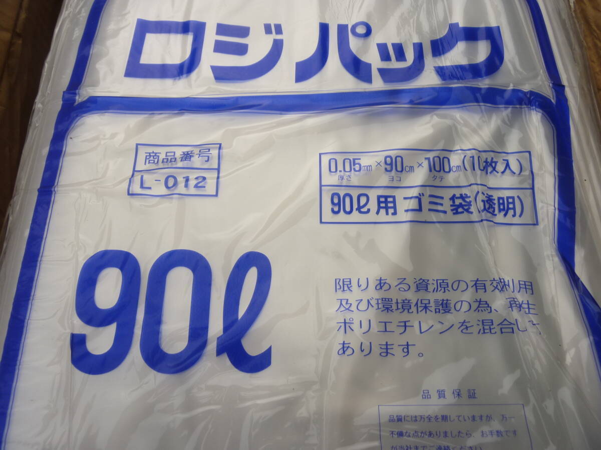 ④ 10枚入20セット 200枚まとめて 軟質ポリエチレン ゴミ袋 ポリ袋 透明 90L ロジパック L-012 0.05㎜ x 900㎜ x 1000㎜