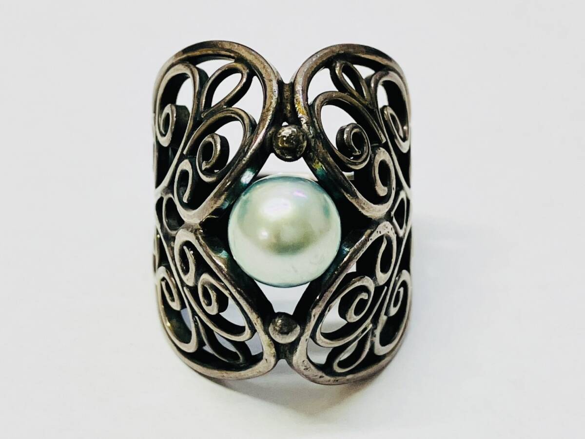 【激レア品?!】真珠 紘 SILVER刻印 ヴィンテージ ブランド シルバー リング #11 パール レディース メンズ ユニセックス デザイン