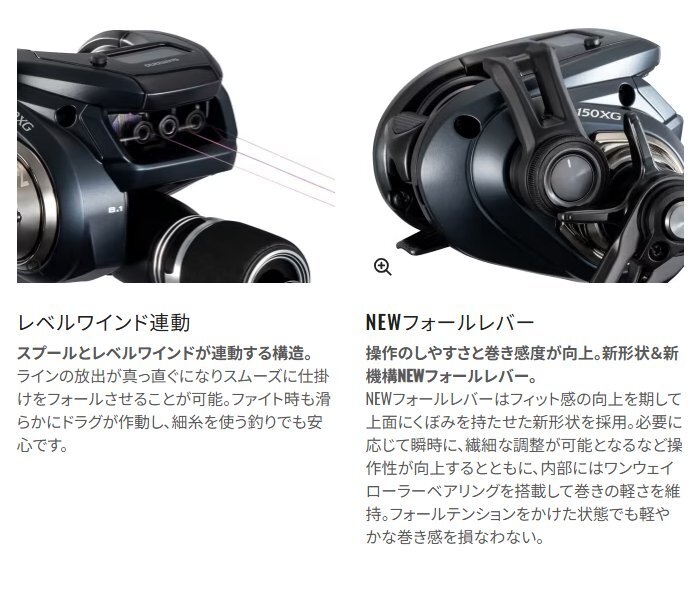 ブレーキをかけてもハンドルの巻きが重くならないNEWフォールレバーと、