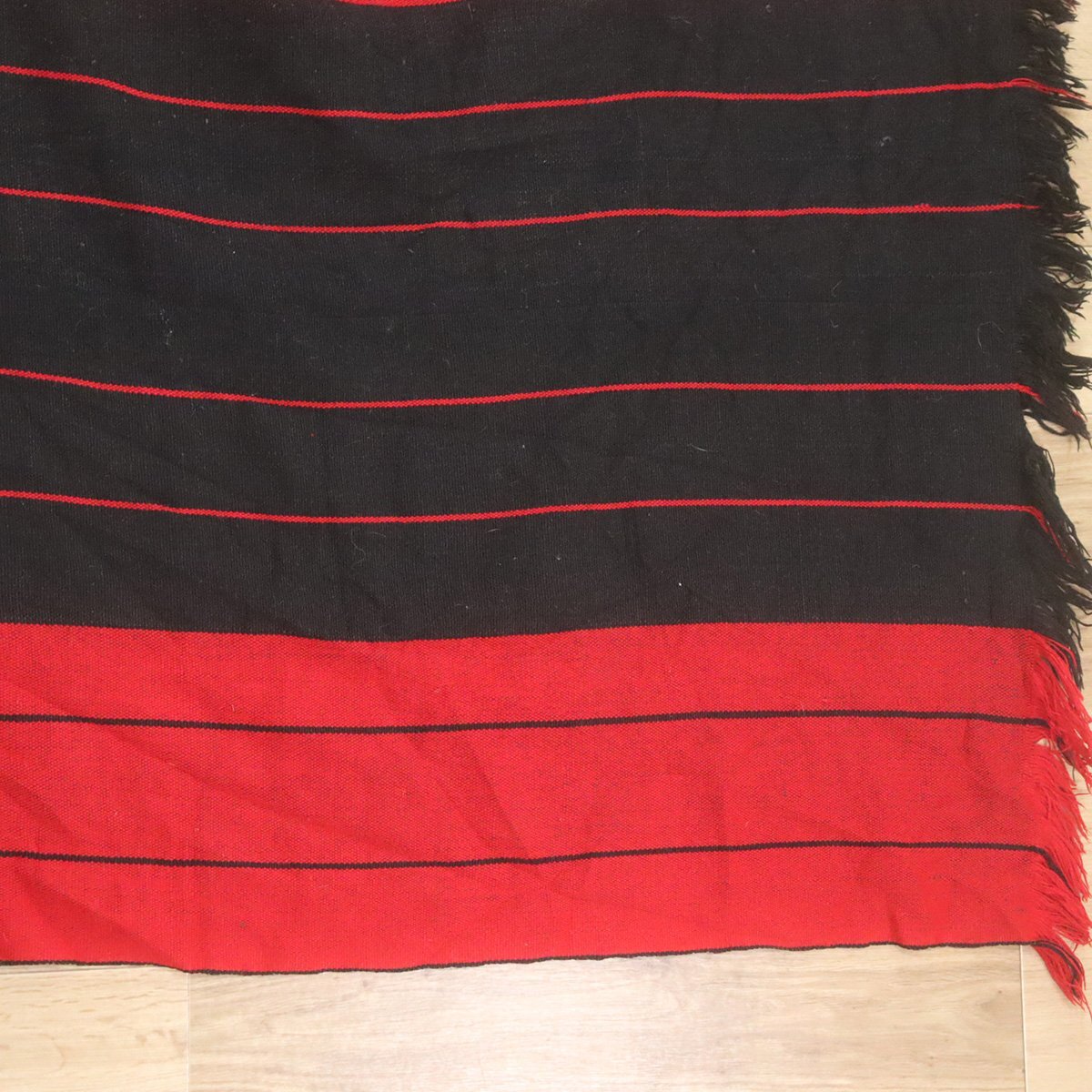 実寸は平置きで縦96センチ、横202センチになります。(フリンジを含む)