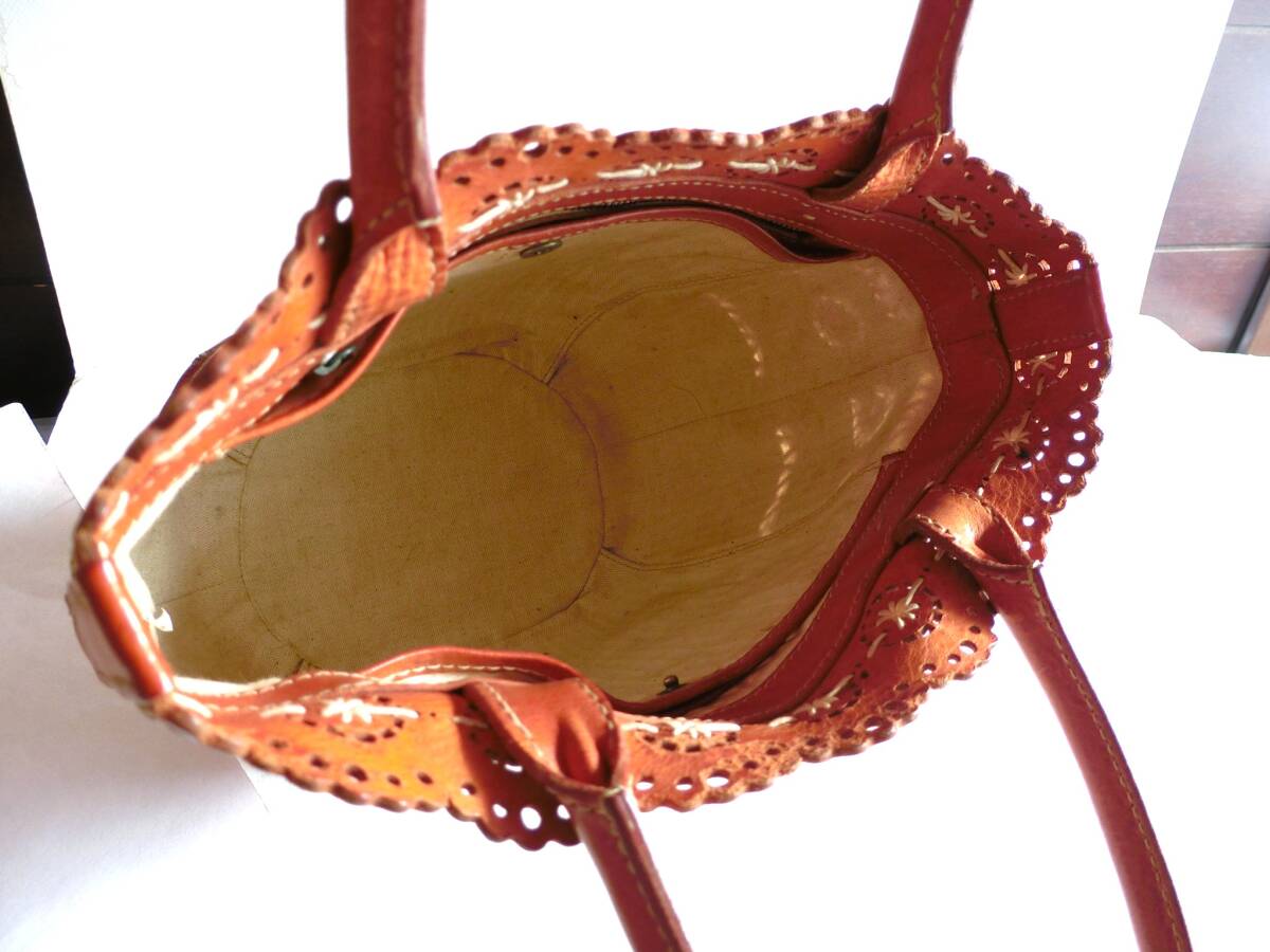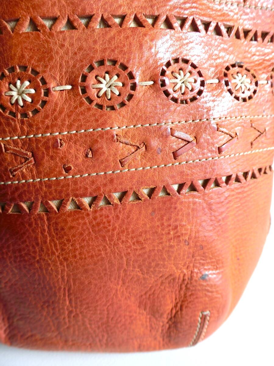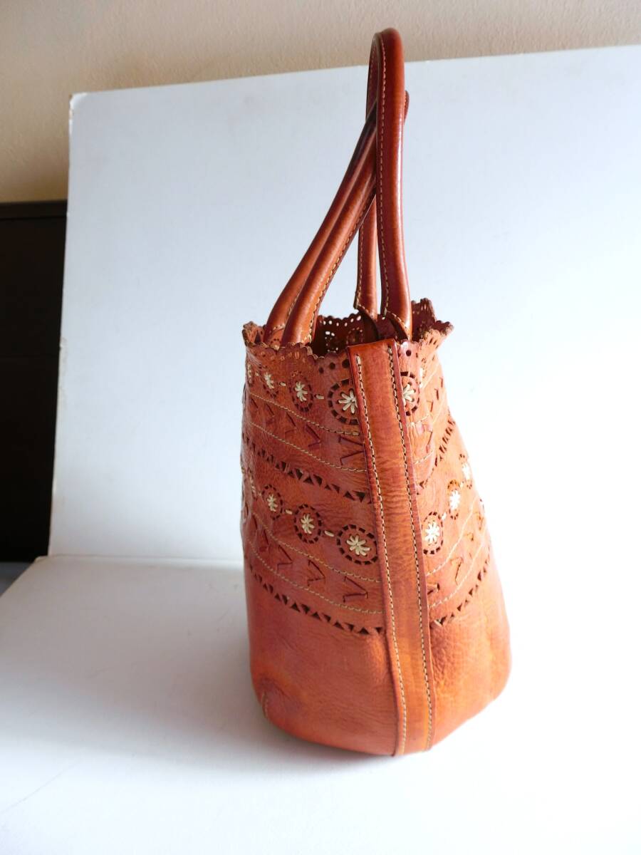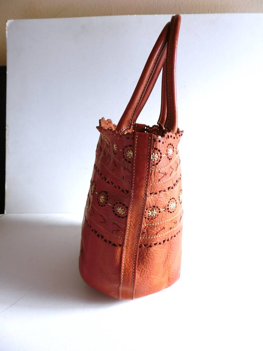 genten ゲンテン ヌメ革レザー カットワーク トートバッグ 透かし模様 花柄刺繍 バケツ型 ハンドバッグ 飴色 手提げ鞄 希少