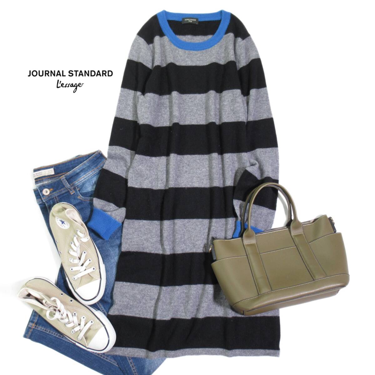 ジャーナルスタンダード レサージュ JOURNAL STANDARD 大人可愛い☆ カシミヤ100% ボーダー ニット プルオーバー チュニック