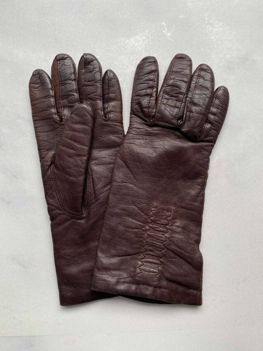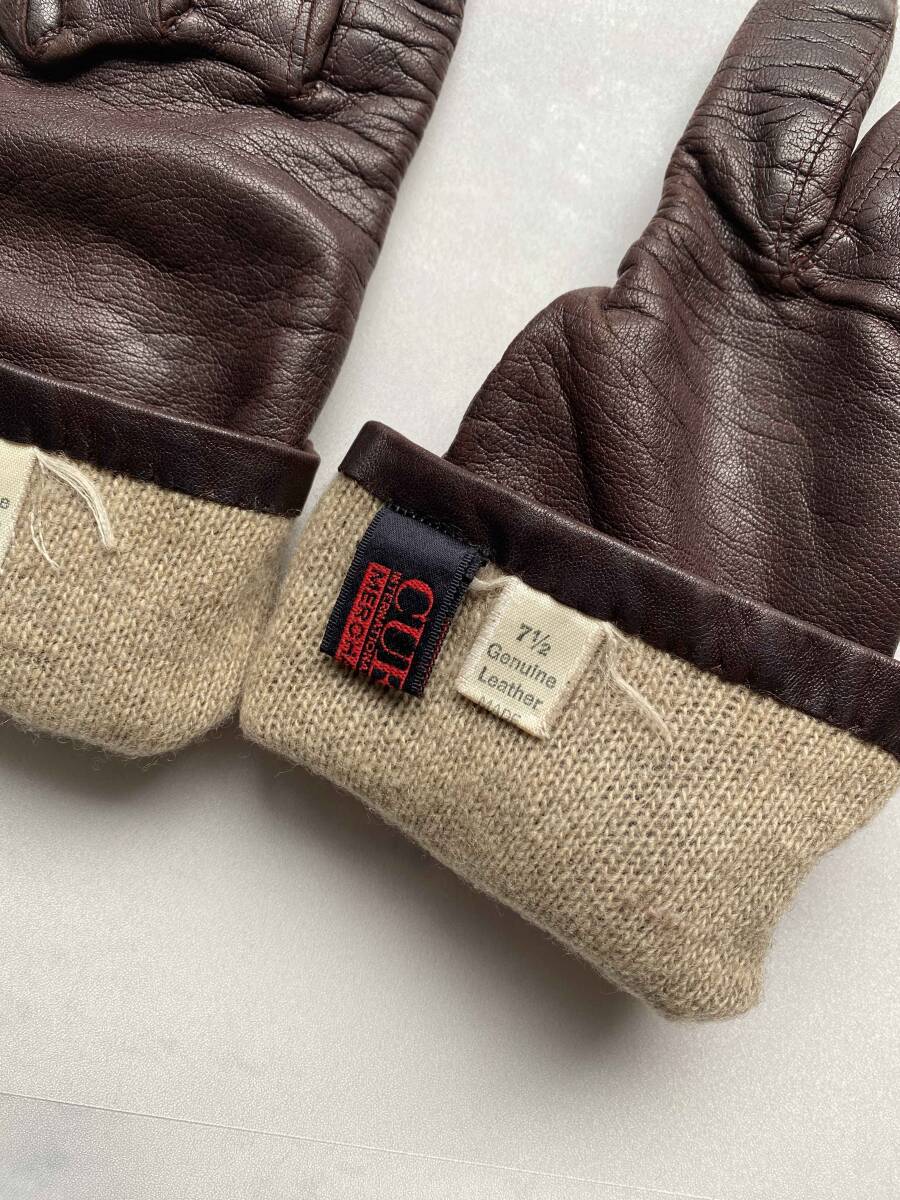 【美品】イタリア製 CUE'SS レディース レザーグローブ ブラウン 革手袋 サイズ7ハーフ カシミア裏地