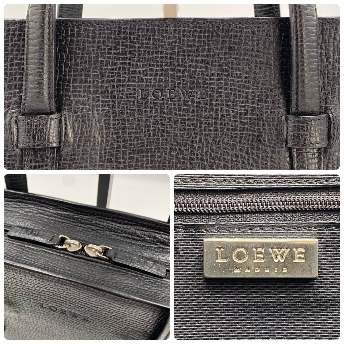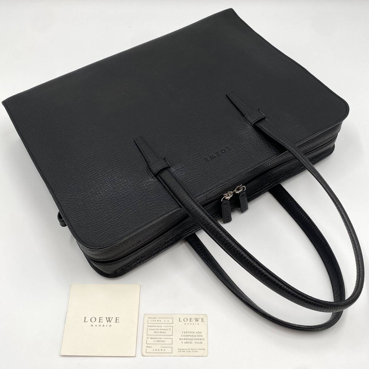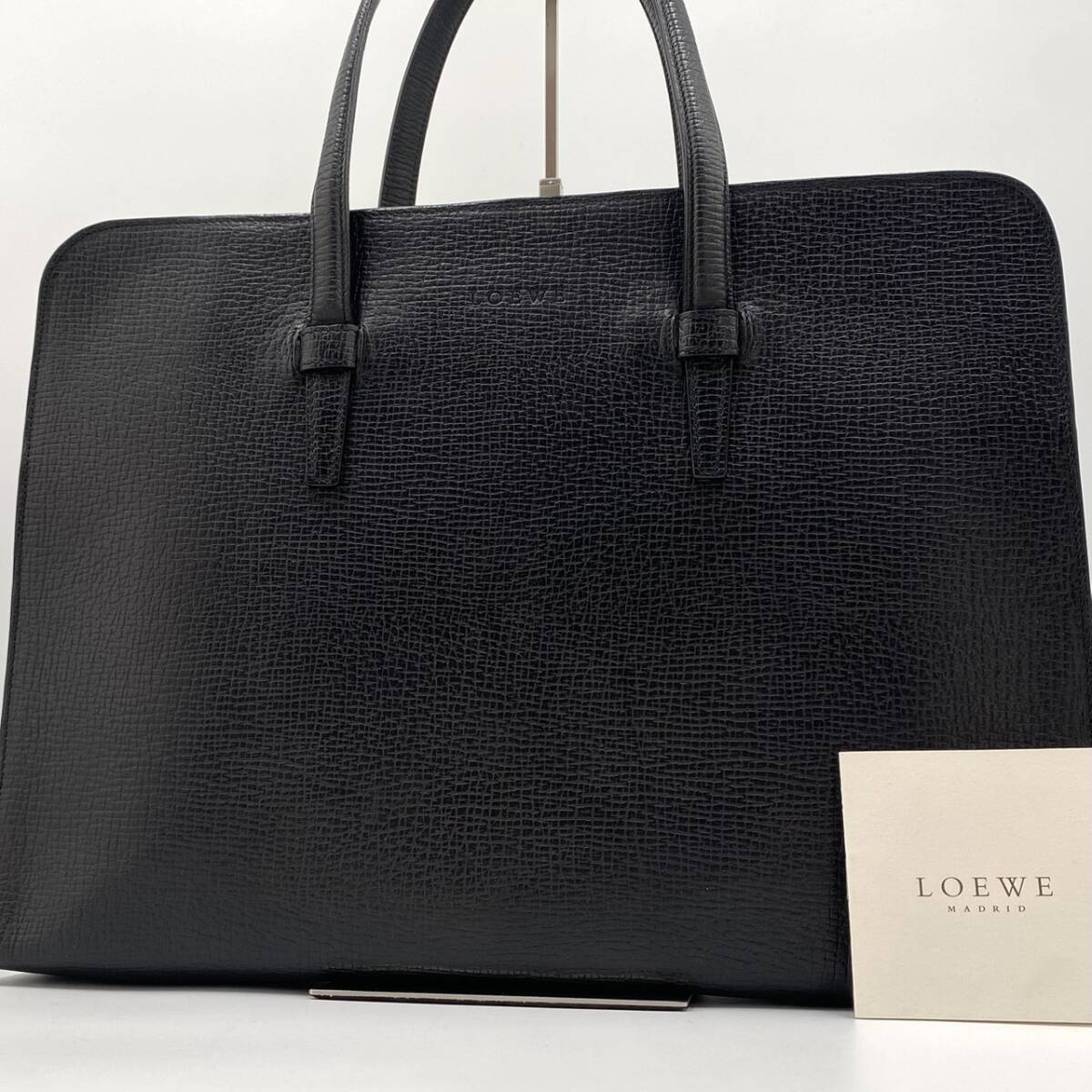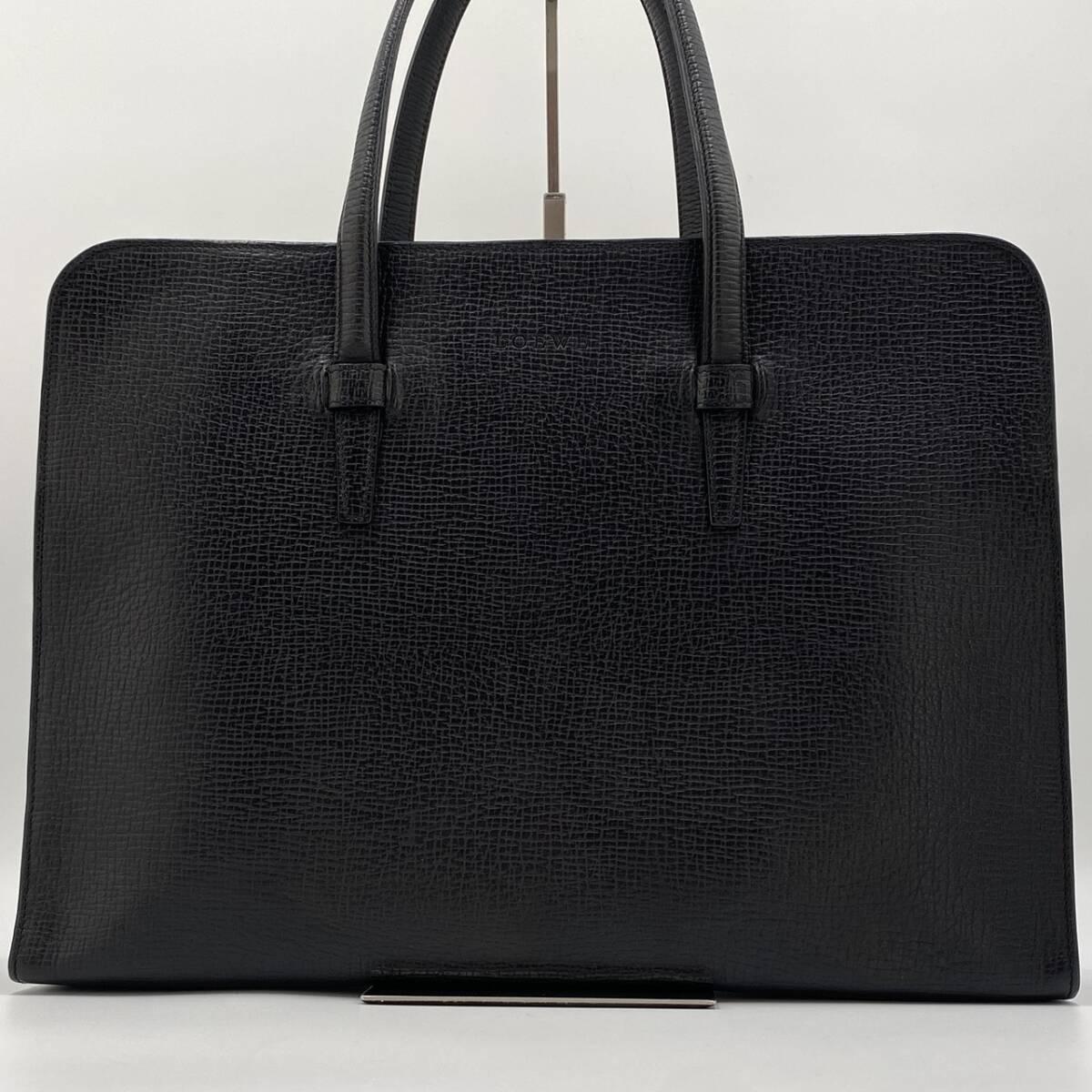 1円【極美品】ロエべ LOEWE メンズ ビジネスバッグ ブリーフケース レザー 本革 A4 トート ロゴ刻印 ハンド ブラック 黒 大容量