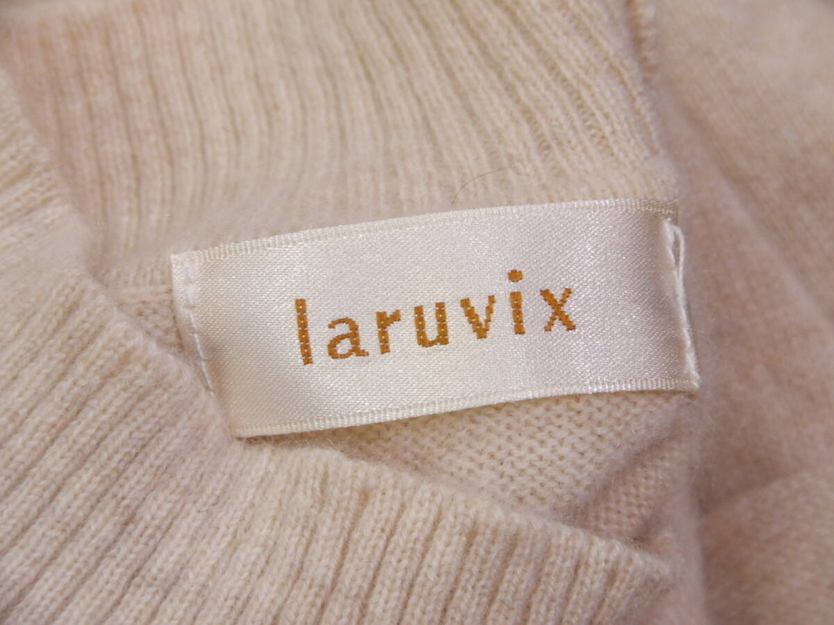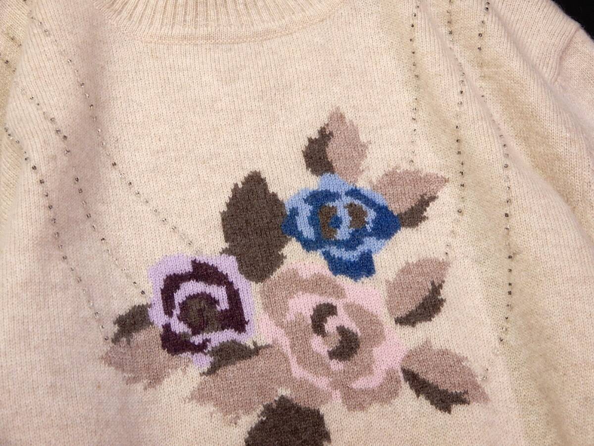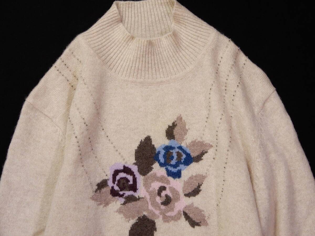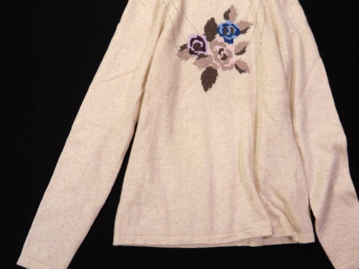 ラルビクス laruvix 大人可愛い☆ カシミヤ100% ビーズ付き フロントフラワー ハイネック ニットプルオーバー M~L