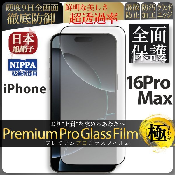 iPhone 16 ProMax 全面保護 強化ガラスフィルム 旭硝子 自動吸着 99%透過 保護フィルム 液晶保護フィルム