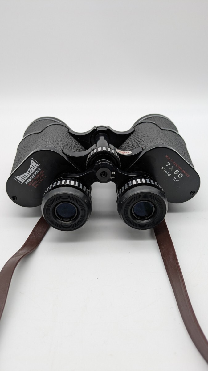 F【500円スタート】HORIZON AMBASSADOR 双眼鏡 7×50 Field 7.1゜ハードケース付 BLACK 黒 状態写真参照