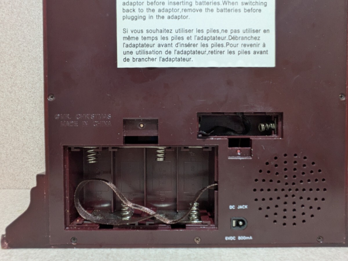 裏のスイッチをCLOCKに合わせると1時間毎に音楽が流れます。