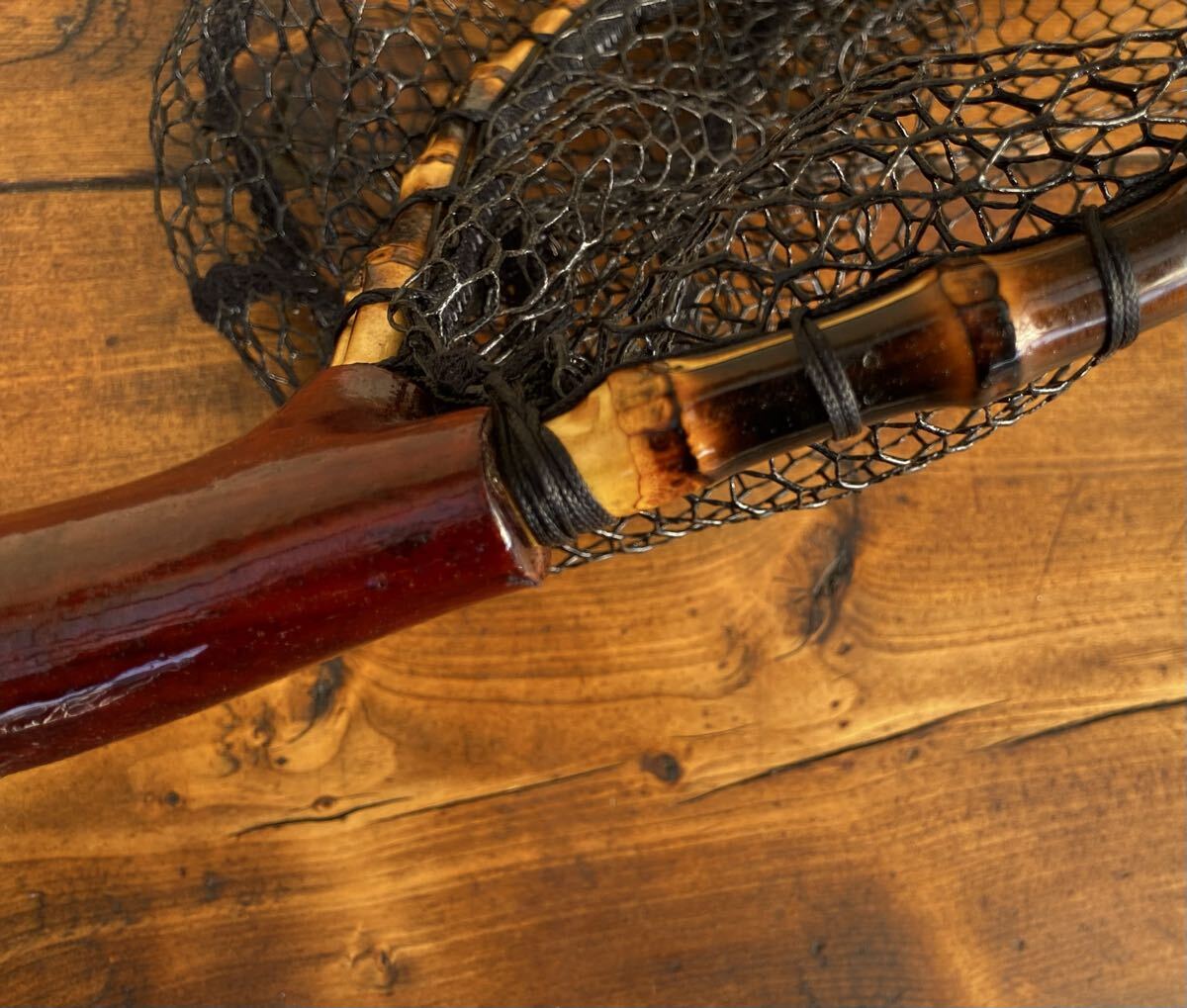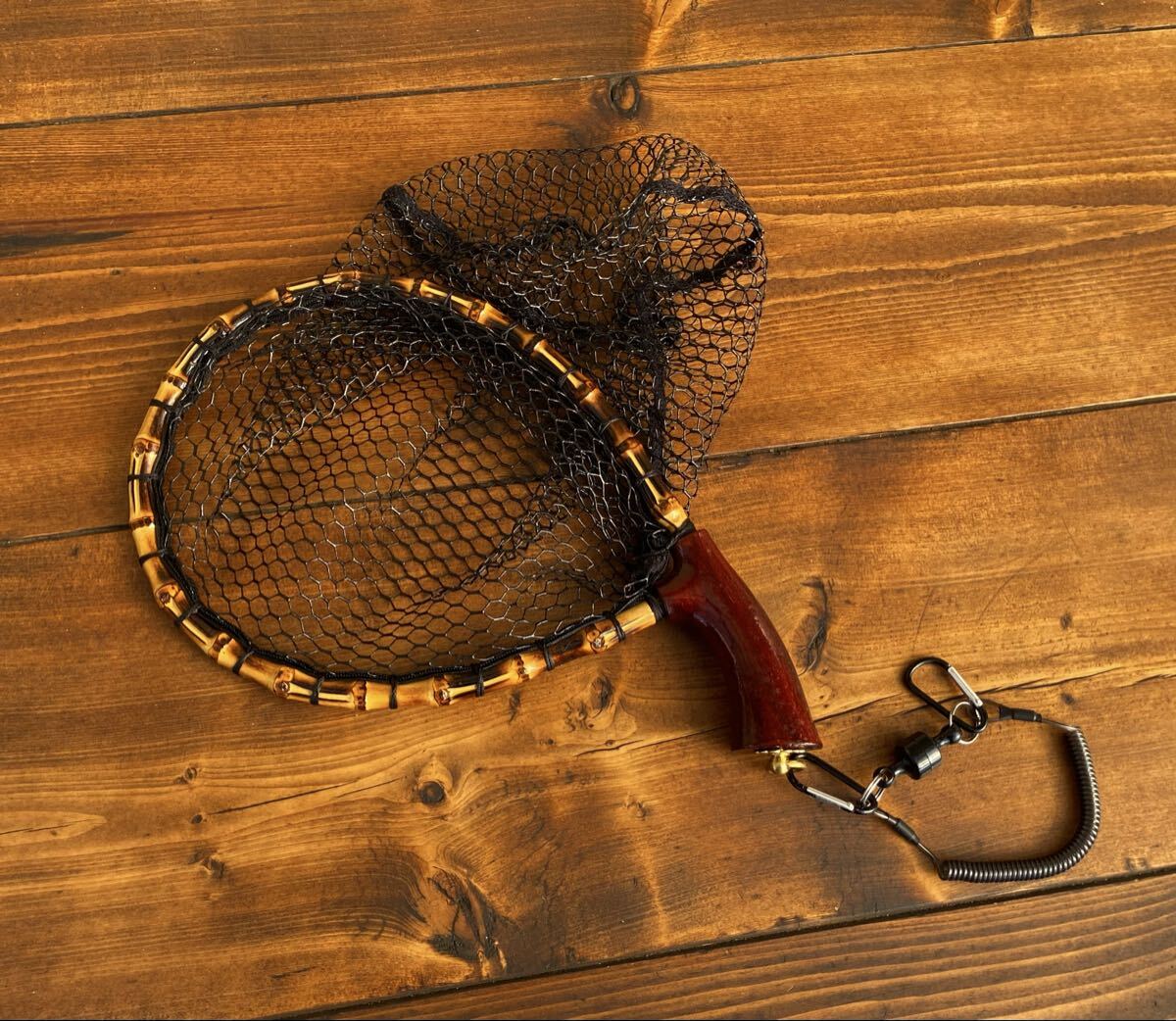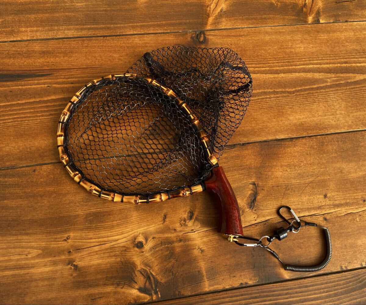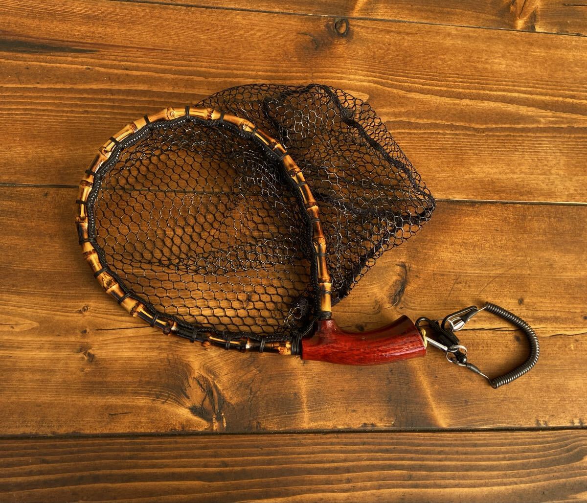 柄に天然木、フレームに天然木を使用したランディングネットです。渓流、源流域での使用にピッタリの大きさです。ネットはラバーコーティングが施されており魚へのダメージを軽減してくれます。