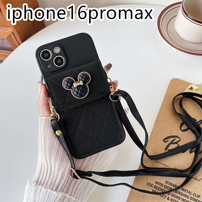 iphone16promaxケース カーバー ショルダー付き 可愛いお洒落 高品質 ブラック1c