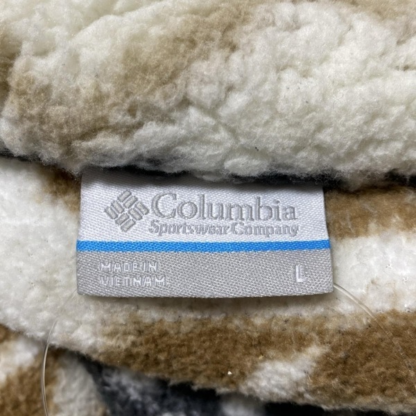 コロンビア columbia ブルゾン サイズL - アイボリー×ブラウン×マルチ レディース 長袖/ボア/ネイティブ柄/ハーフジップ/秋/冬