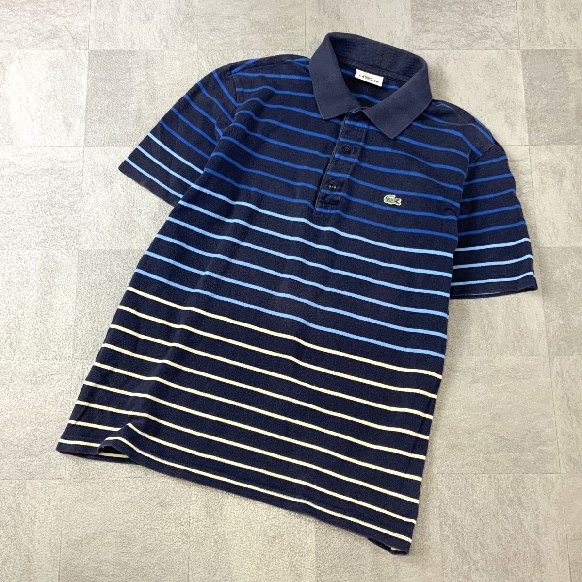 LACOSTE ラコステ ボーダー 鹿子 半袖 ポロシャツ メンズ サイズ3 S ネイビー グラデーションカラー