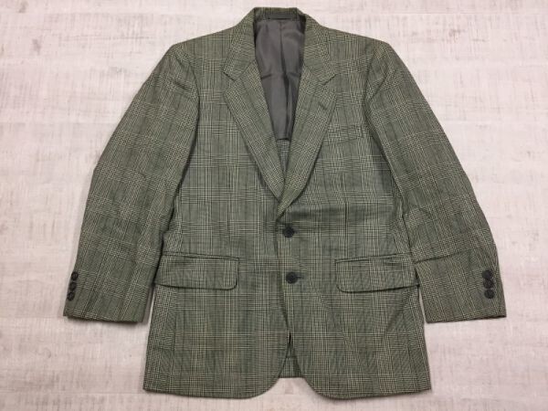 ELECTRO 松坂屋 レトロ トラッド 古着 グレンチェック 背抜き テーラードジャケット メンズ ウール100% 2つボタン YA88 白/黒