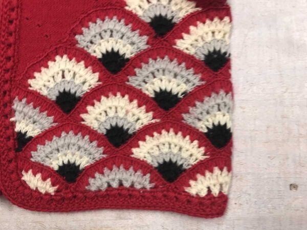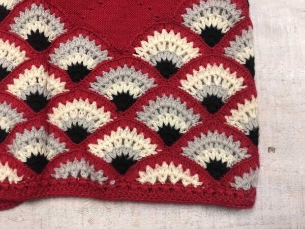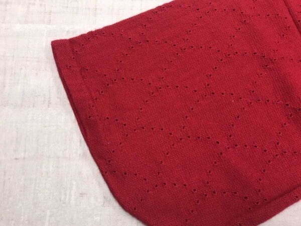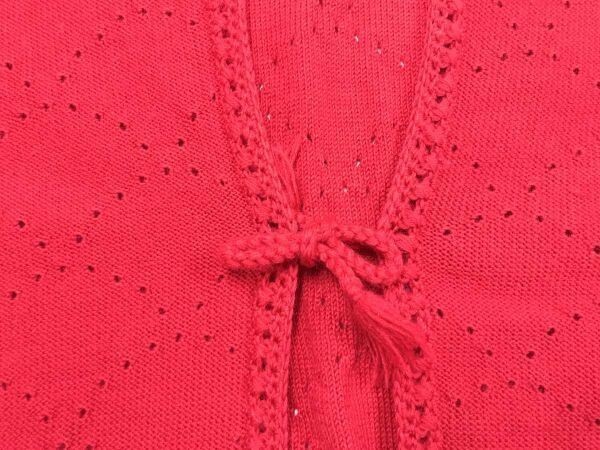 レトロ オールド ジャパンビンテージ 和柄 波模様 針抜き 着物スリーブ ニット ジャガード 半袖 手編み 羽織り カーディガン レディース 赤です。