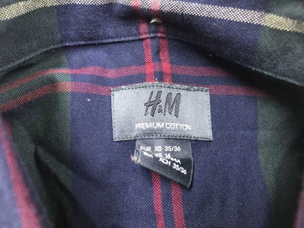 H&M エイチアンドエム ブリティッシュ 英国トラッド アメカジ 古着 チェック長袖シャツ メンズ ボタンダウン XS 紺です。