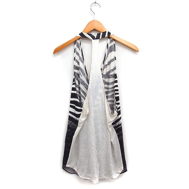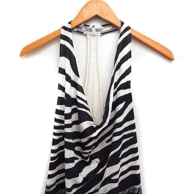 ベータ β ゼブラ柄 タンクトップ Tストラップバック リネンシルク混 40 ブラック 黒 キナリ /FT18 レディース